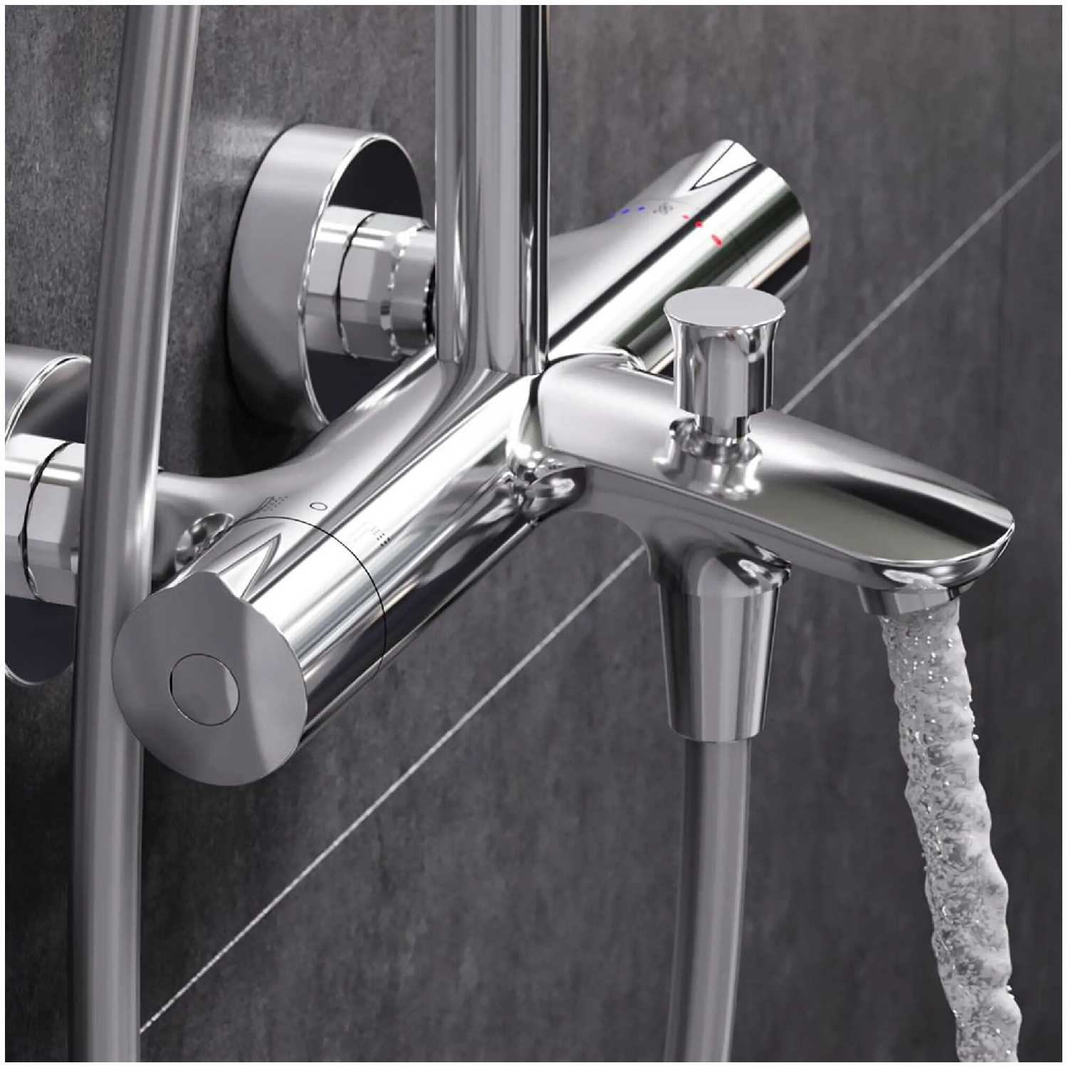 - + Хорошая душевая стойка, сделана качественно, с установкой проблем не возникло, удобный смеситель с термостатом