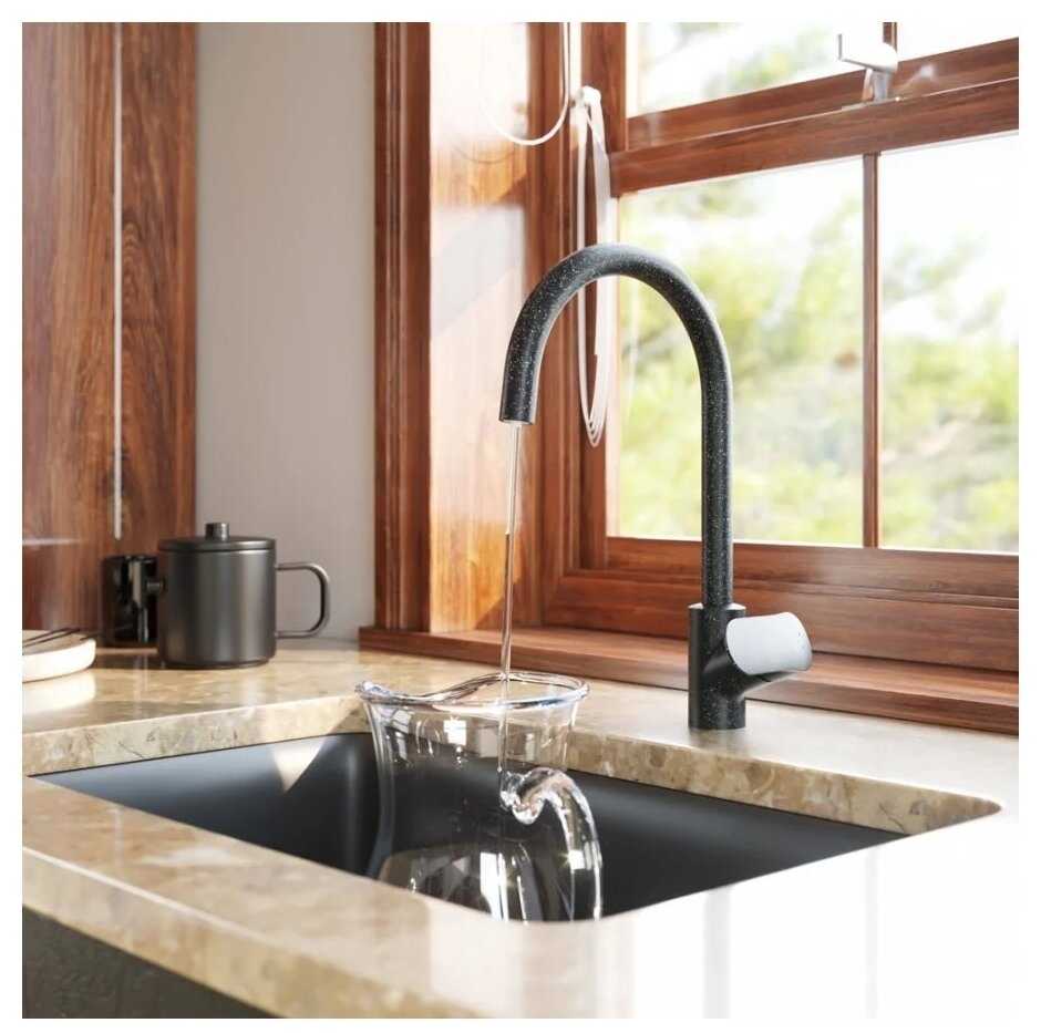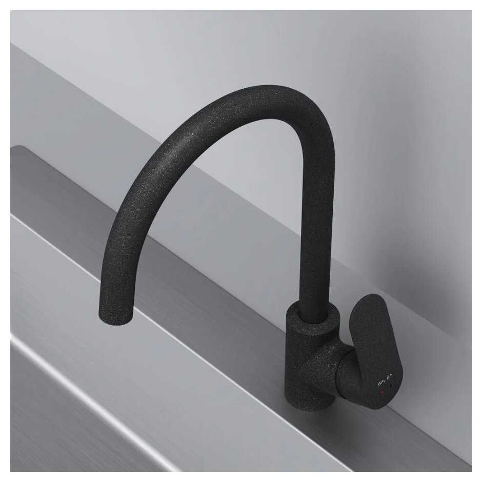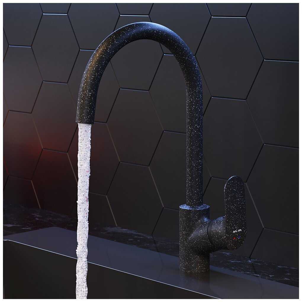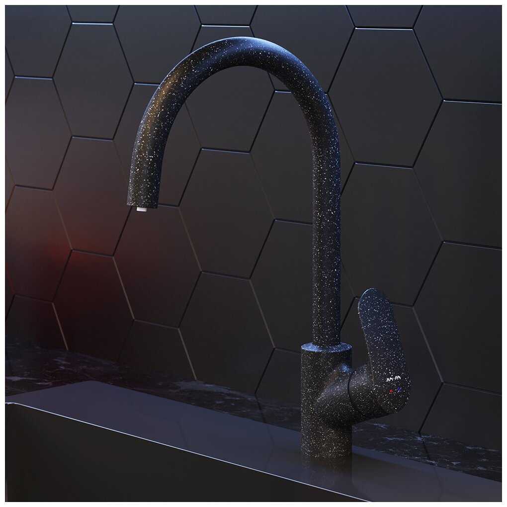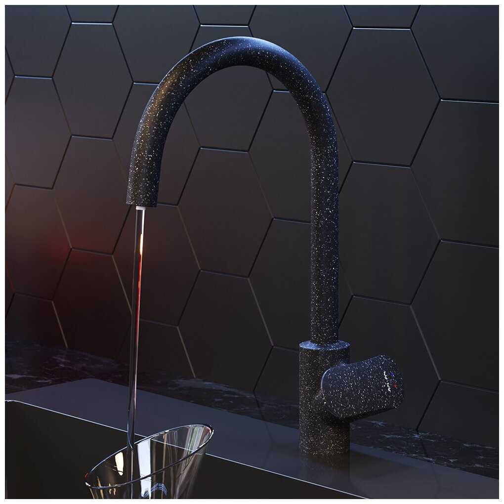 - + Стильный черный цвет подходящий под черную раковина с гранулами, удобное совмещение с фильтровальным краном