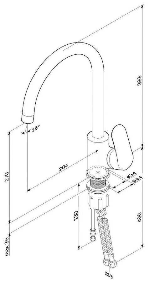 - Нестандартная резьба подводки (3/8"):