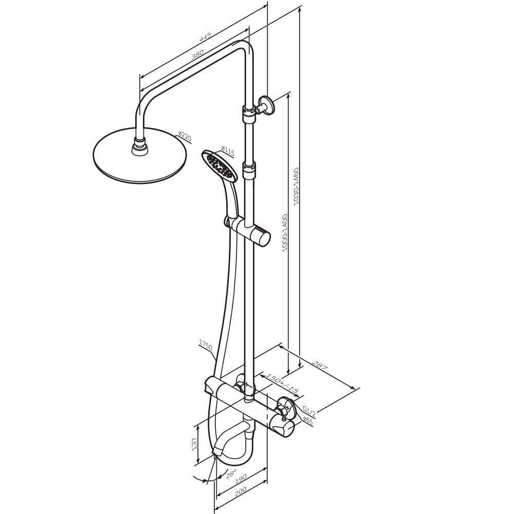 | Высота стойки для душа : | 1020 мм |