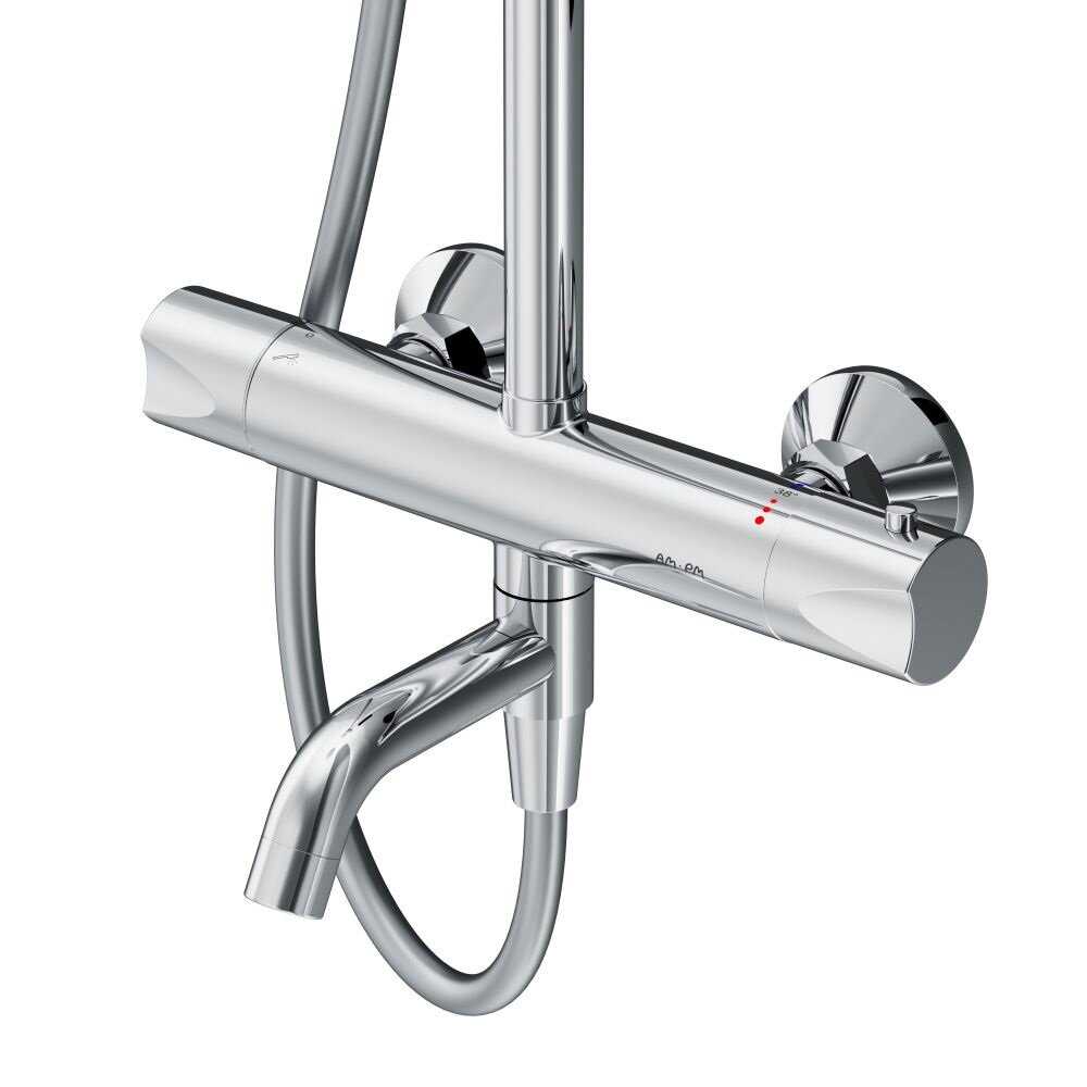 Термостат, встроенный в систему, оценивается пользователями очень высоко за свою точность и быстроту срабатывания. Он моментально реагирует на изменения параметров входящей воды, надежно поддерживая заданную температуру, что делает его незаменимым для семей с детьми или для домов с газовыми котлами, где возможны скачки температуры. Эта функция обеспечивает максимальный комфорт и безопасность во время принятия душа. -