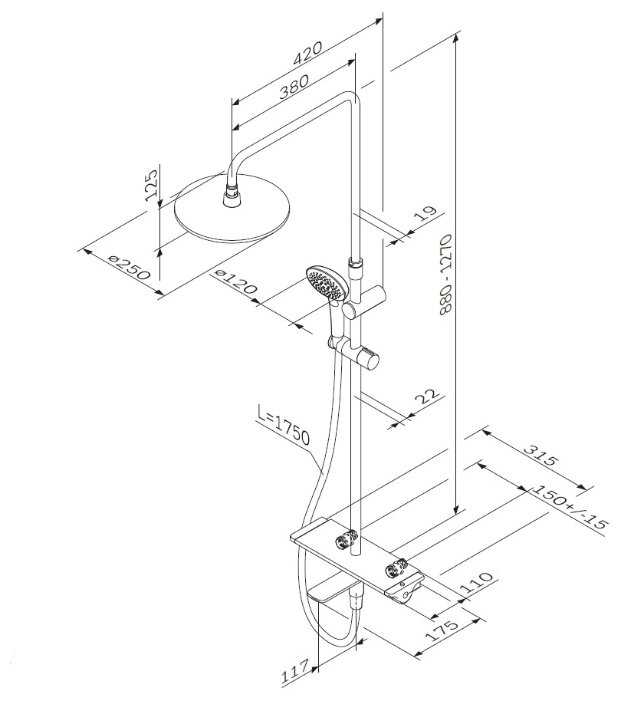 | Высота стойки для душа : | 1270 мм |