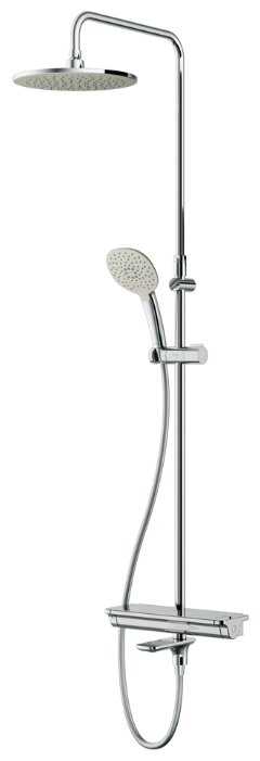- + Чуть ли не самая недорогая душевая стойка приличного бренда с термостатом, тропическим душем, ручным душем и изливом. Регулируемая по высоте штанга - для меня спасение, так как в ванной комнате низкий потолок, а перекладывать трубы в стене (и ломать плитку) не хотелось - нужно было вписаться в габариты старого китайского смесителя в купленной квартире. Красивая, управление простое и понятное, производит впечатление качественной вещи.