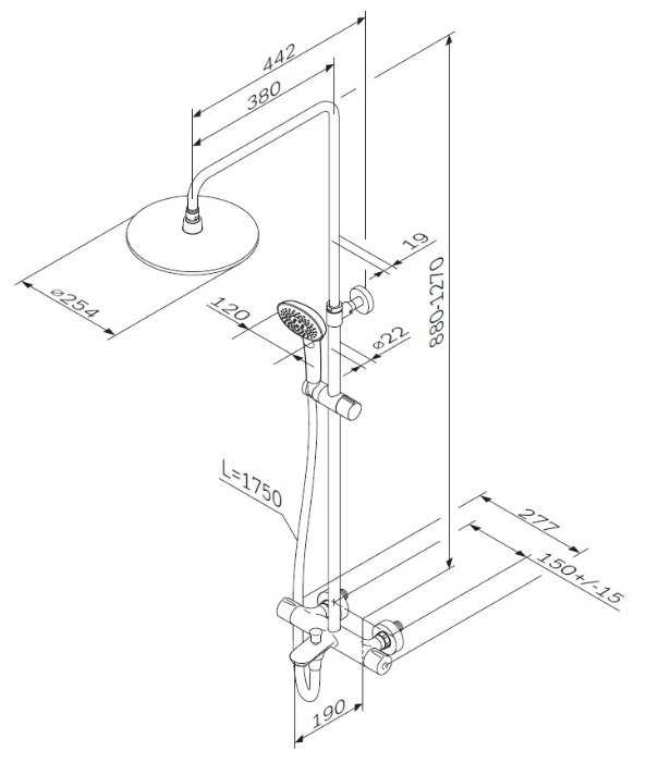 | Высота стойки для душа : | 1460 мм |