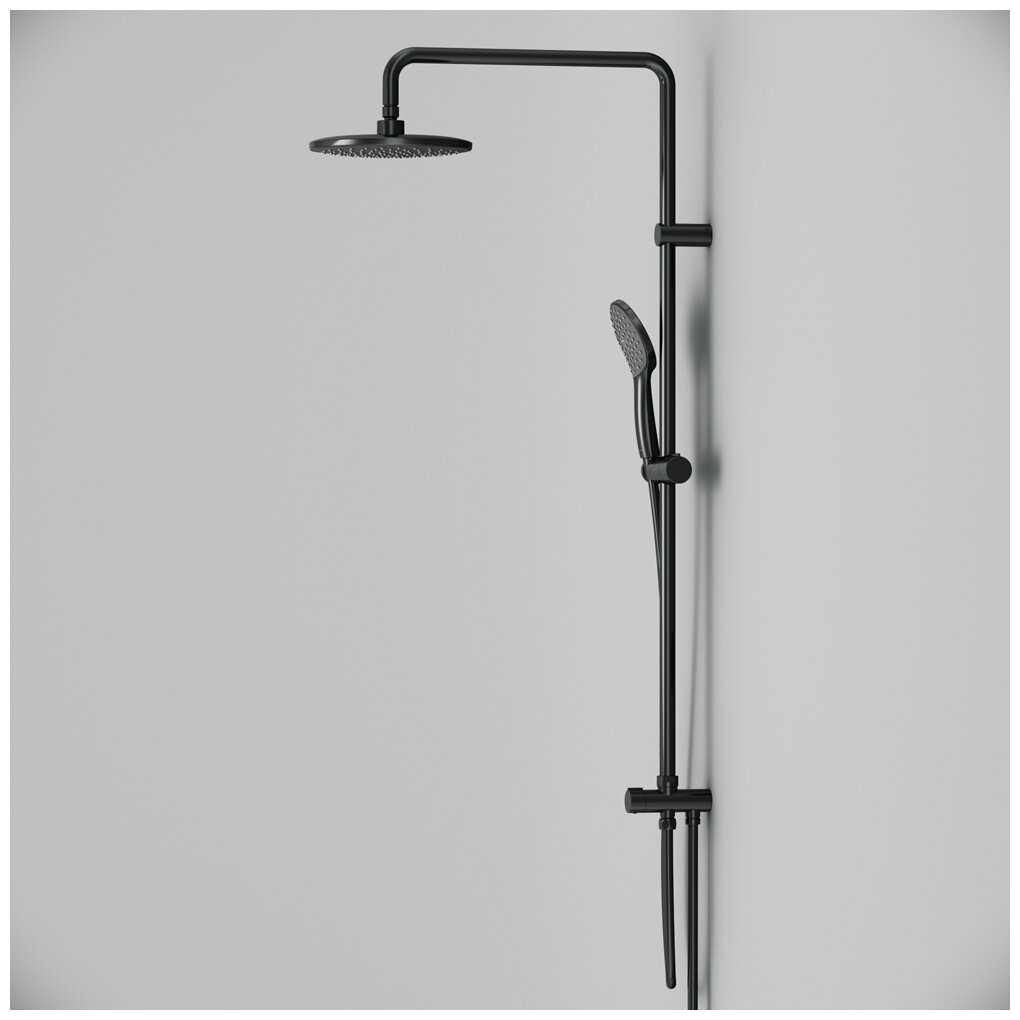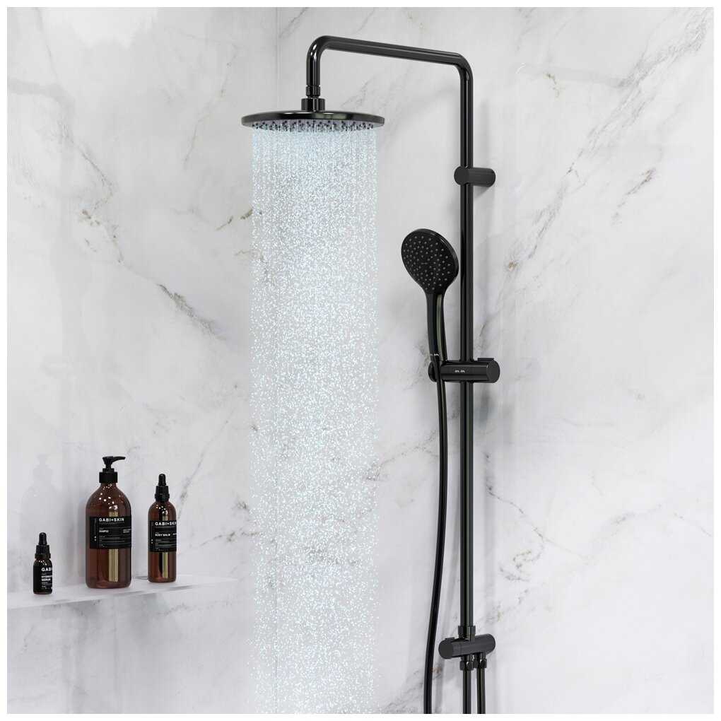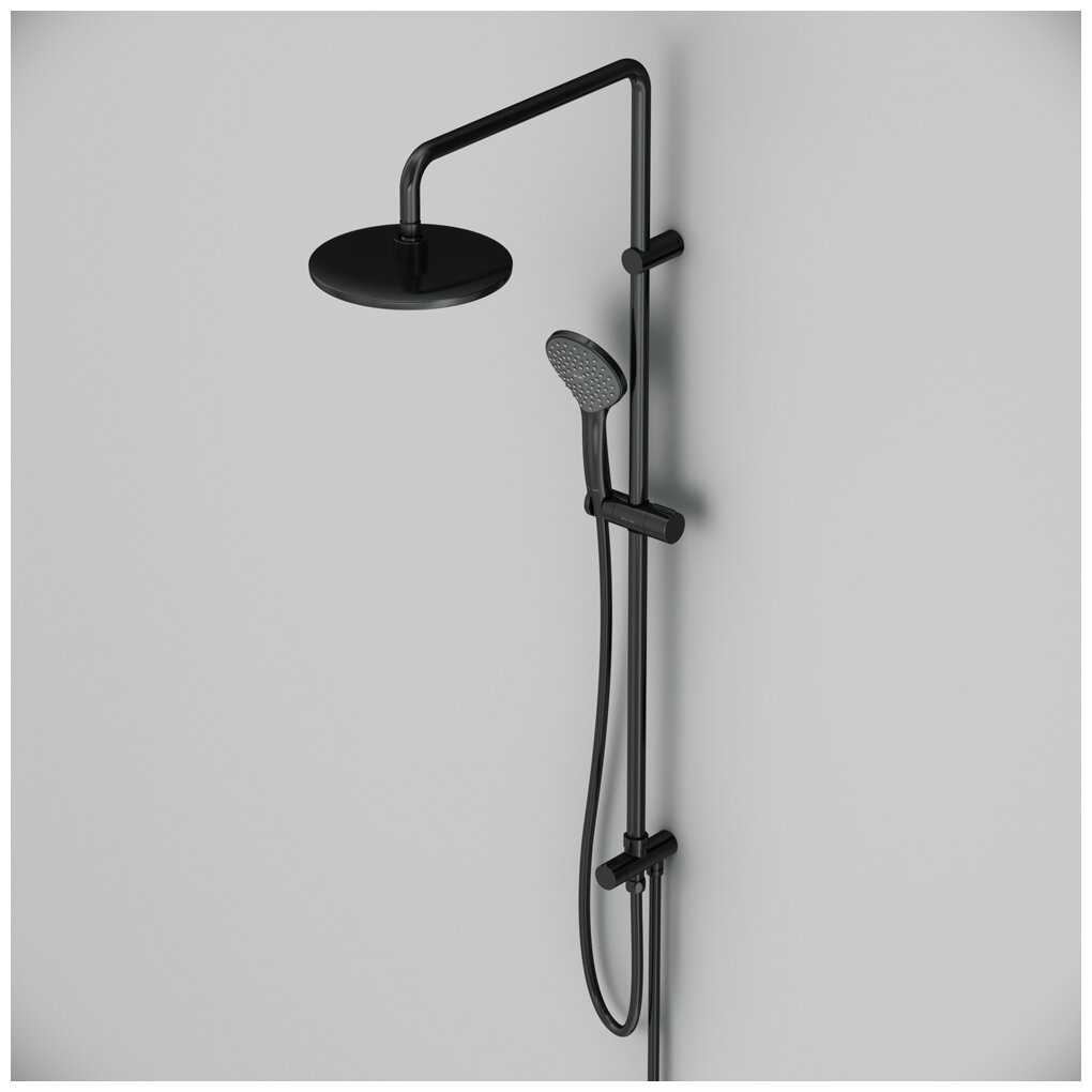 - + Не дорогая простая в обслуживании душевая стойка, матового черного цвета. Пока все работает исправно.