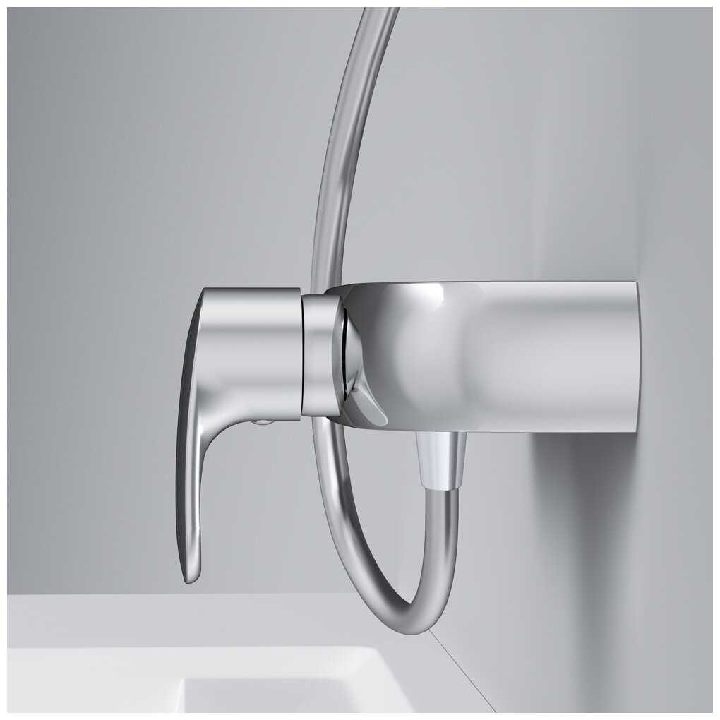 - + Нижнее подключение душа, поверхность - полочка, высокое качество покрытия смесителя.