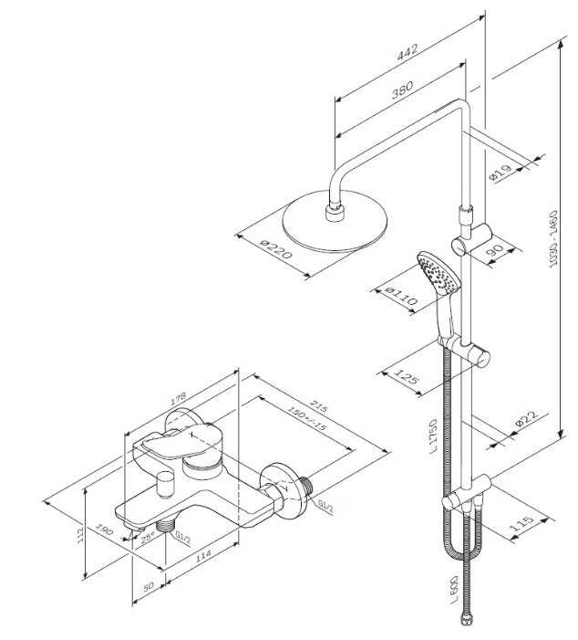 | Особенности : | S-образные эксцентрики, антиизвестковое покрытие, аэратор, держатель душевой лейки, защита от обратного потока, защита от скручивания, обратный клапан, поворотный излив, регулируемый верхний душ |