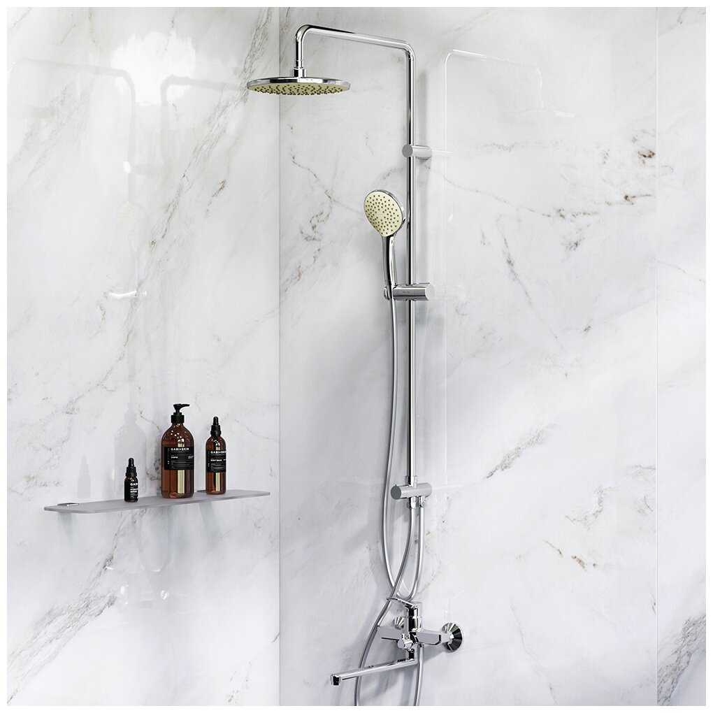 Простая и надёжная душевая система, пользуемся такой уже порядка трёх месяцев без нареканий. Прикрепили её быстро. У неё удобная штанга, которая имеет телескопическую конструкцию, и позволяет настроить расположение верхнего душа в зависимости от роста пользователя.