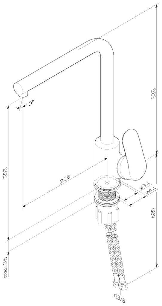 - - Не российский размер шлангов, вращение крана не ограничено /можно залить стол при повороте крана/