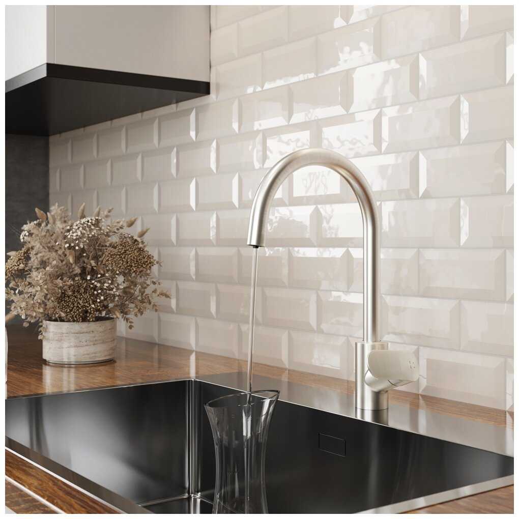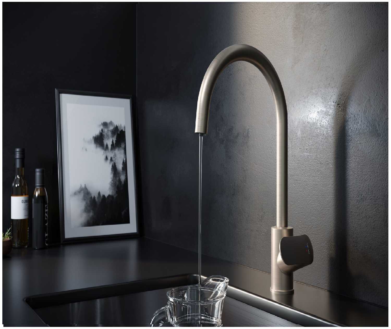 - + Удобное управление краном с фильтрованной и обычной водой без дополнительной ручки. Красивый дизайн смесителя, сатиновое покрытие интересно смотрится.