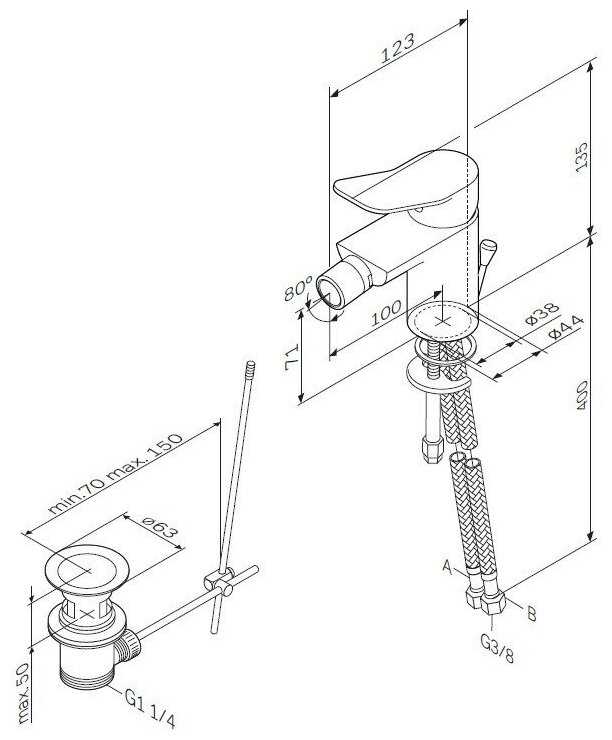 Стандартная гибкая подводка, как у большинства смесителей - подключается быстро, без переходников, затягивается так, что смесак с места не сдвинешь...