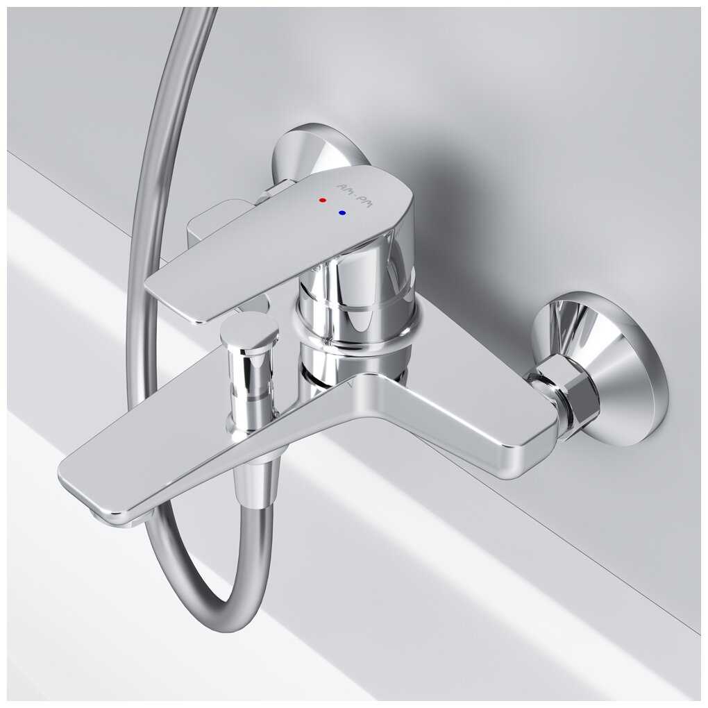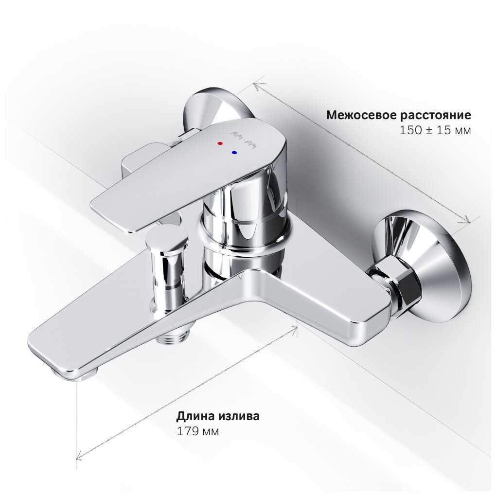 Смеситель для ванны AM.PM взяли вместо старого. Устроил по размеру, по типу крепления – настенное. Модель однорычажная, рычаг в форме ромба, смотрится необычно. В руке лежит удобно, напор/температуру настраивать легко. Переключатель на душ работает как положено, не переключается обратно, если напор маленький.
