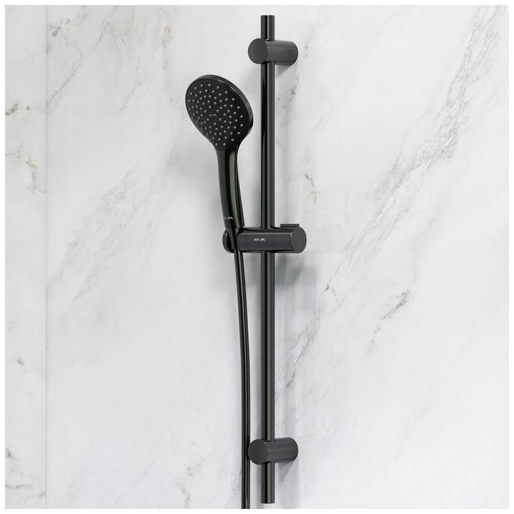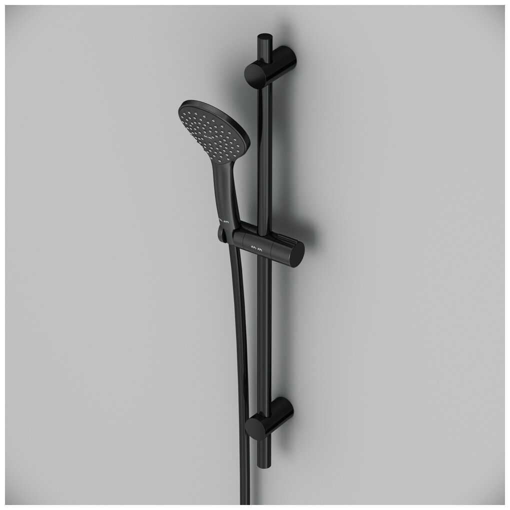 Душевой комплект в стильном чёрном цвете. Он имеет переключатель, с помощью которого можно...