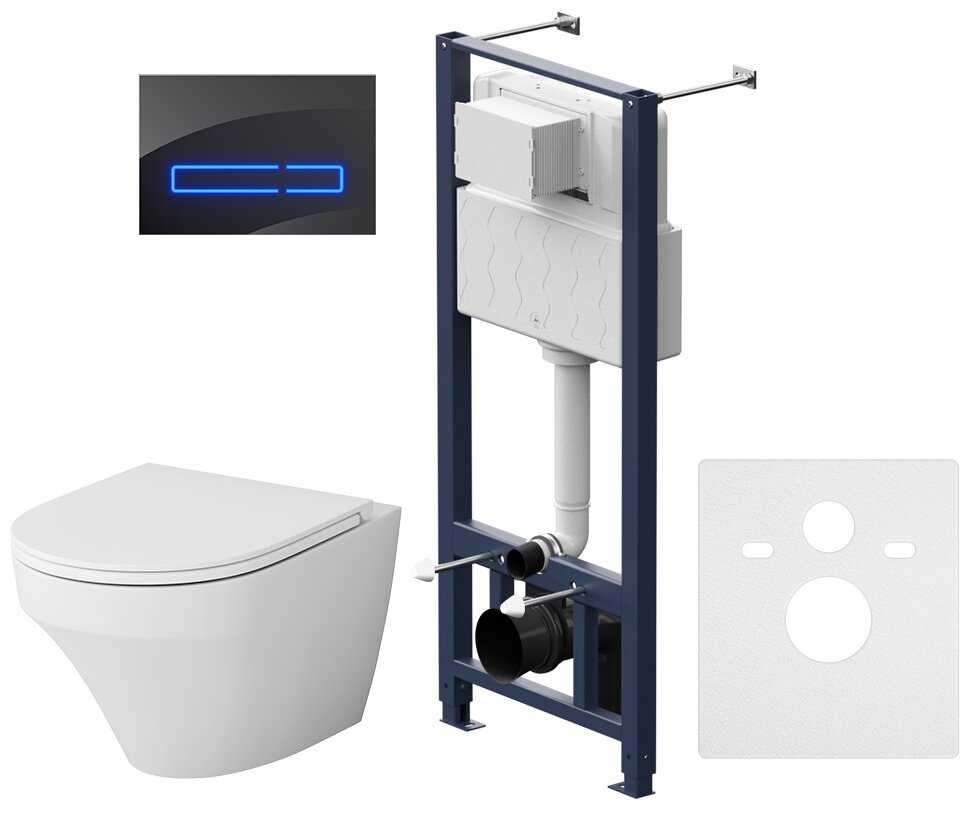 Дополнительная информация : | Бачок на стальной раме смывная арматура гибкая подводка воды к заливному клапану монтажная коробка для окна обслуживания регулируемые по высоте опорные стойки для крепежа в пол шпильки для крепления к стене крепежные шпильки для унитаза патрубки фанового отвода патрубки для подвода воды к унитазу прокладка между стеной и унитазом (шумоизоляция) набор крепежа клавиша с креплениями, чаша унитаза сиденье крепления инструкция. |