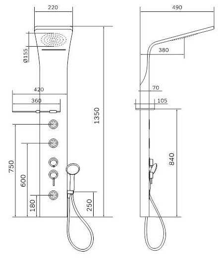 - назначение: для ванны с душем
