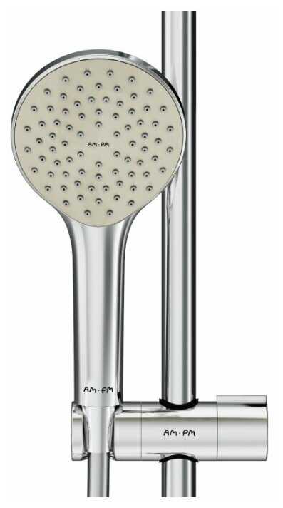 - + Качественная душевая система от известного производителя за приемлемые деньги. Идеально подошла к смесителю AM.PM Joy. У той лейки что поменьше 5 разных режимов. Переключатель леек сделан в виде кнопки.