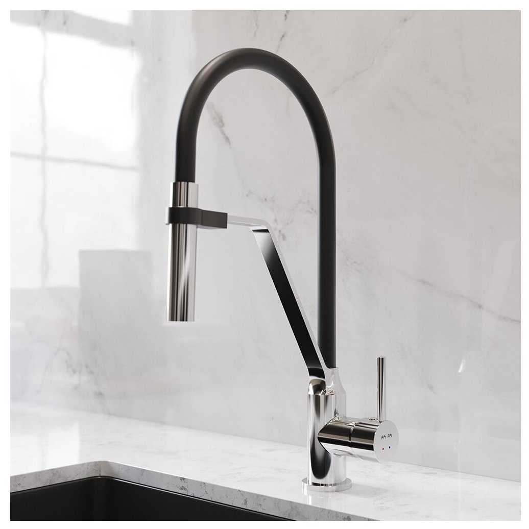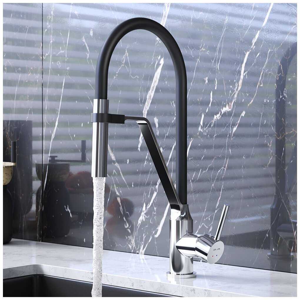 Гибкий излив позволяет легко маневрировать и точно контролировать поток воды, облегчая наполнение кастрюль и мытье посуды. Смеситель также имеет плавный и простой в использовании рычаг, который позволяет легко регулировать температуру воды.
