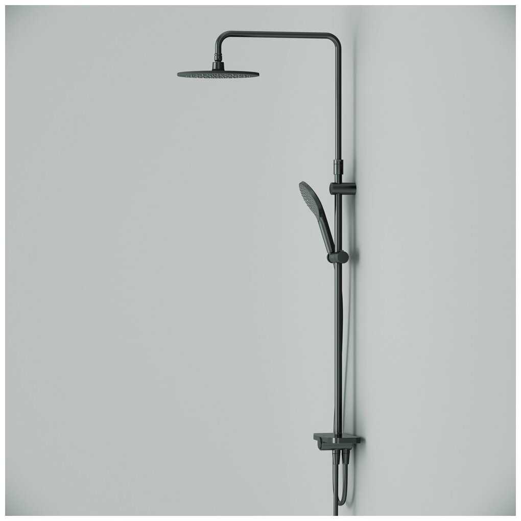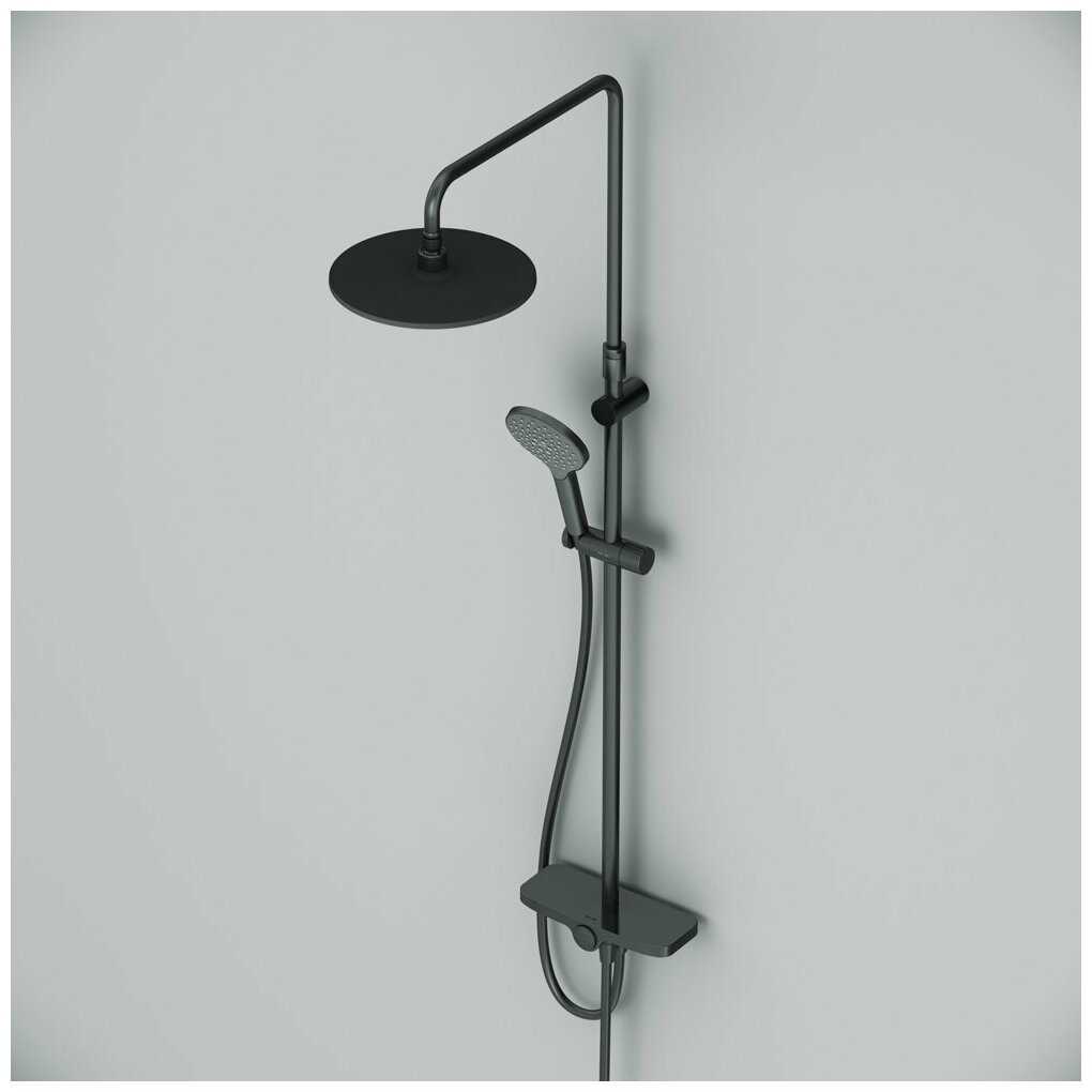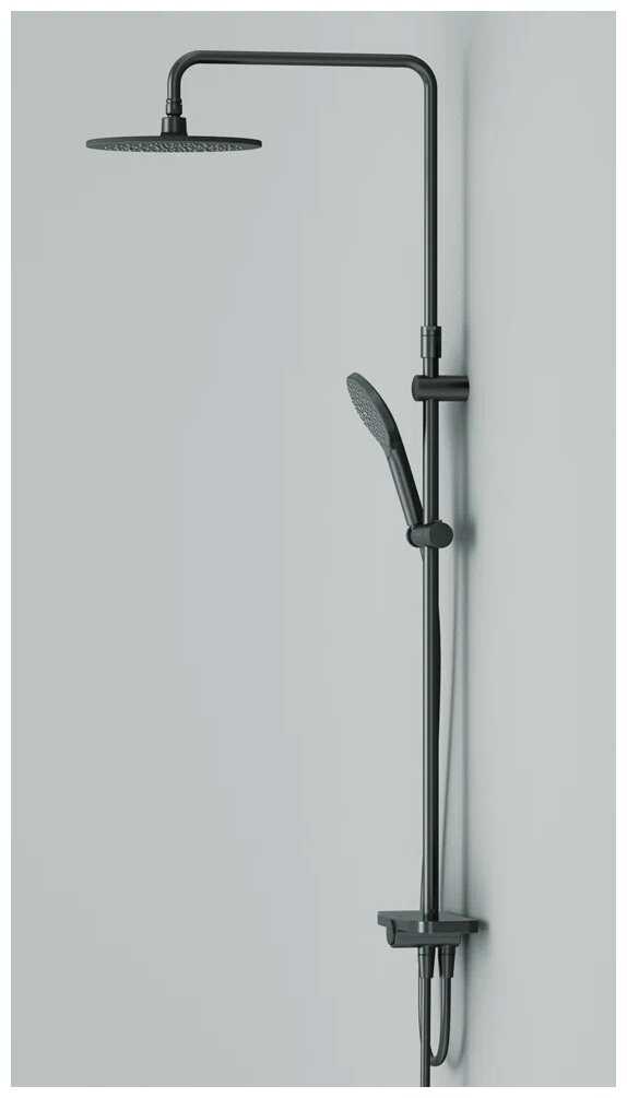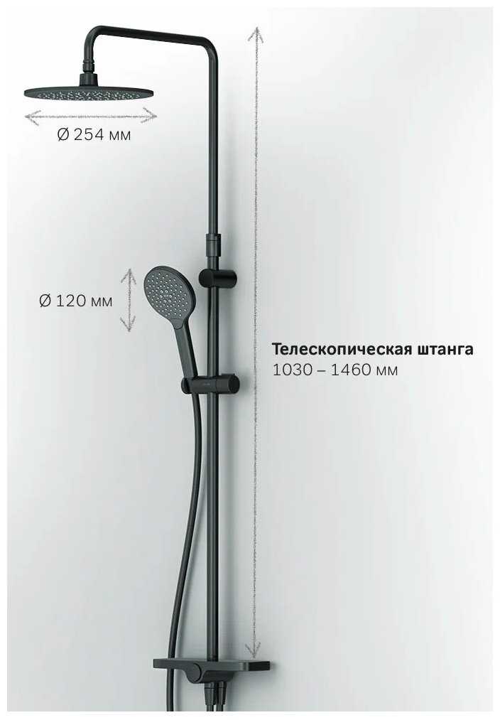 - + Отличная система, хорошая цена. Полка удобная, кнопка тоже. Сам душ телескопический