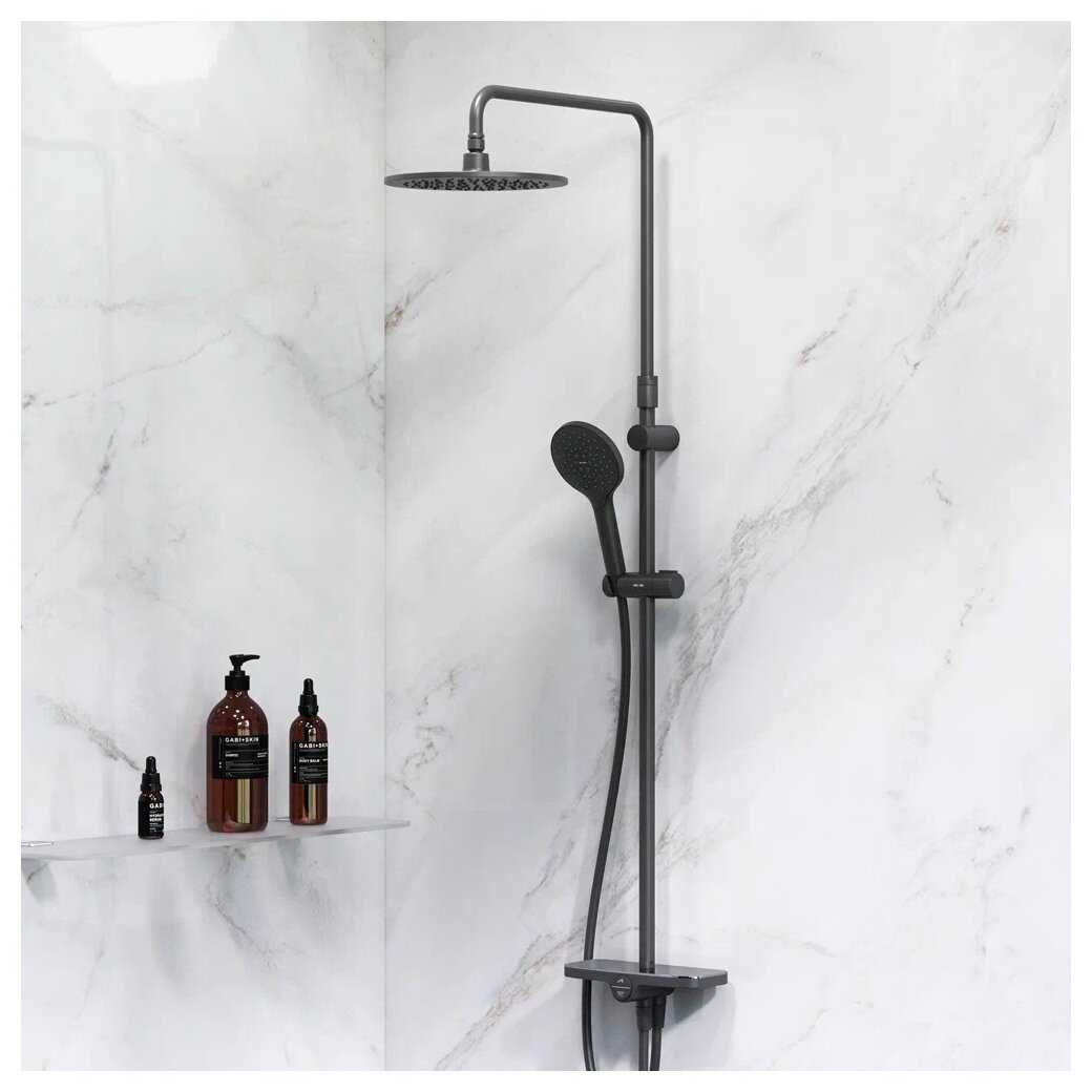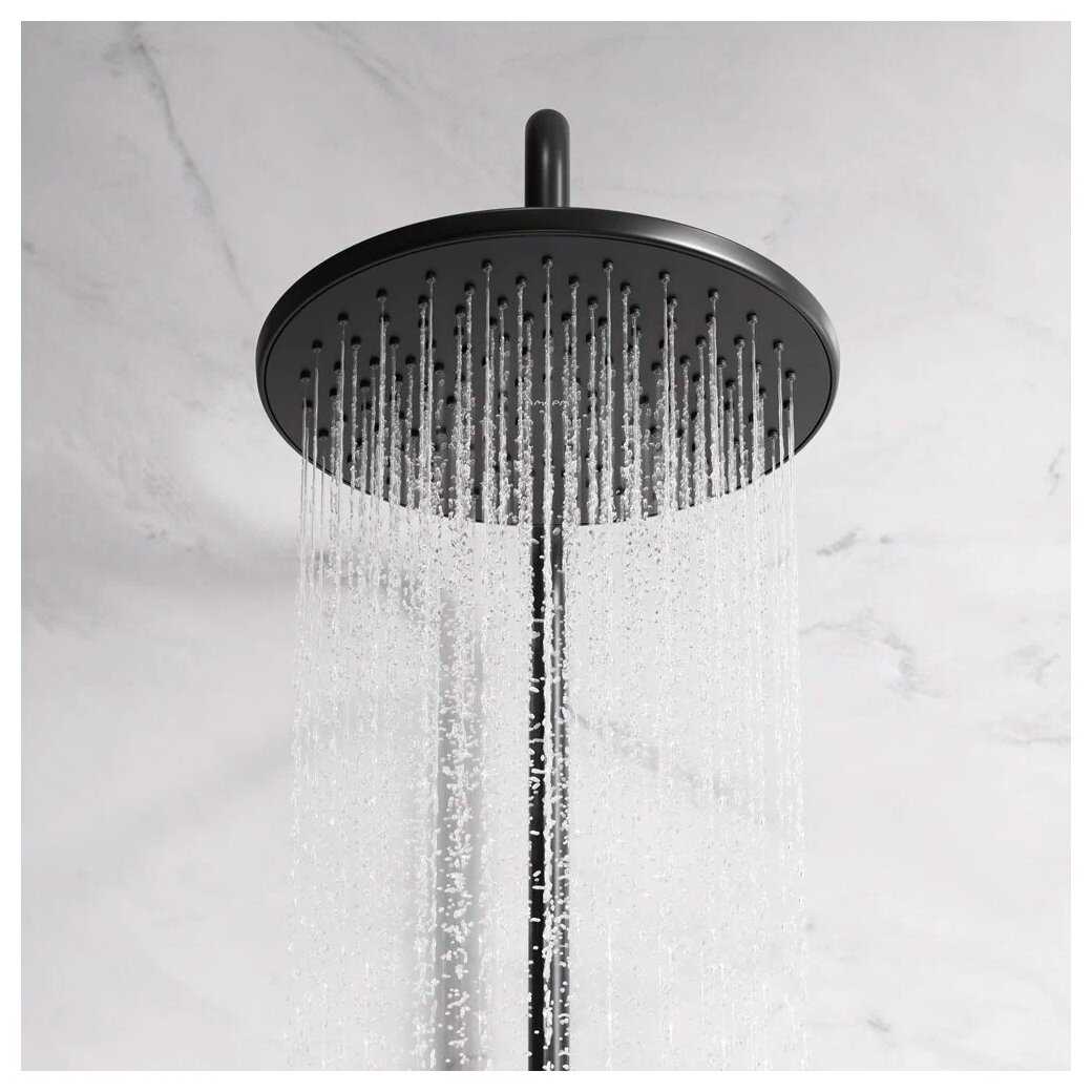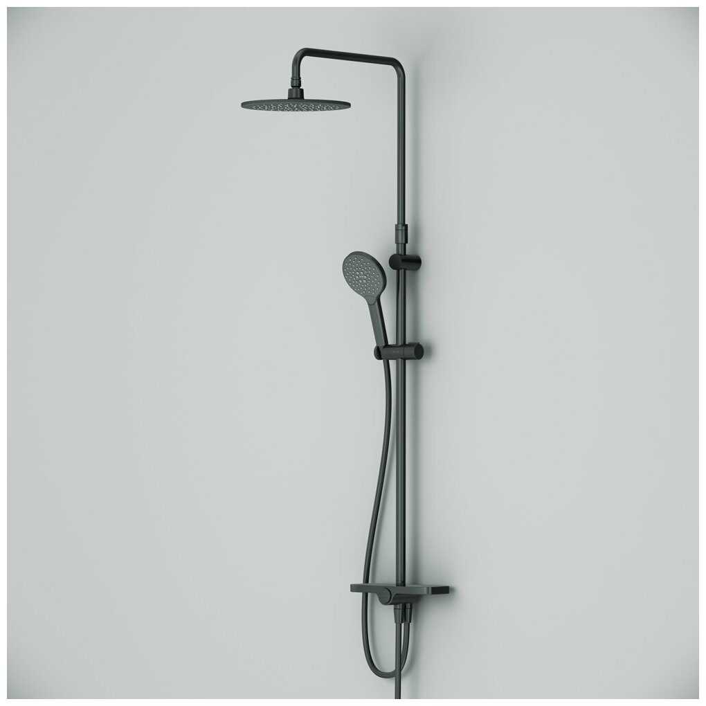 - + Отличная система, хорошая цена. Полка удобная, кнопка тоже. Сам душ телескопический