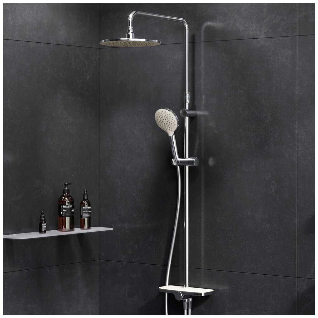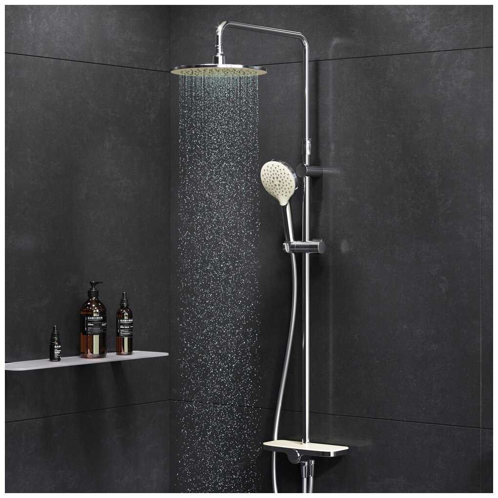 - + Удобная лейка, 3 режима. Верхний тропический душ тоже удобный. Лейка держится основательно.