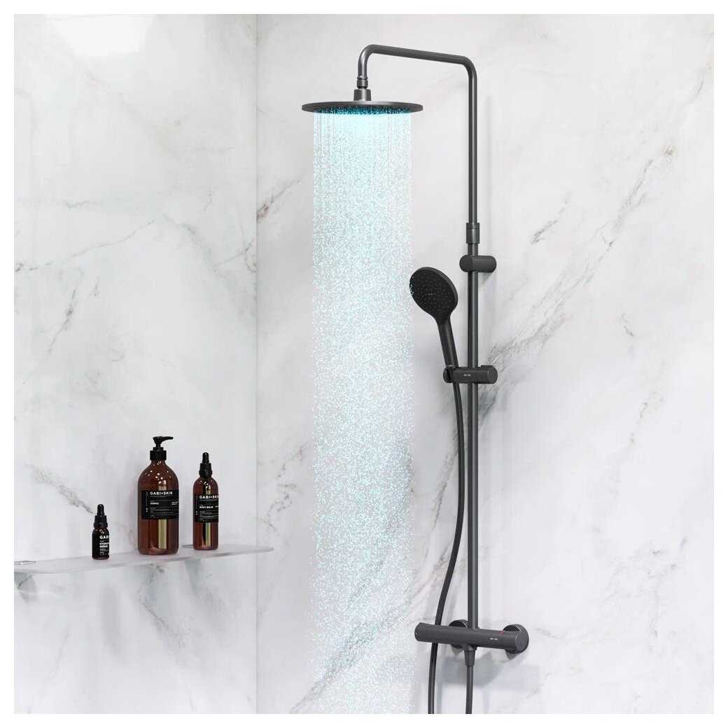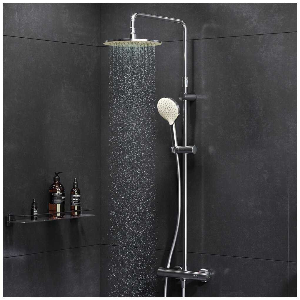 Работа термостата и гидравлика: Термостатический модуль системы, судя по отзывам, является ее наиболее сильной функциональной стороной, но его работа имеет нюансы. При стабильном давлении в системе термостат исправно поддерживает заданную температуру, компенсируя перепады, вызванные одновременным использованием воды в других точках квартиры. Пользователи высоко оценивают это удобство, отмечая, что один раз настроив комфортную температуру, можно забыть о дальнейших регулировках. Однако при высоком входном давлении (порядка 2.8-3.3 атм.) и использовании большой верхней лейки (230 мм) напор расценивается как достаточный, но не избыточный. Стабильность работы термостата сильно зависит от общего состояния системы; с течением времени и появлением внутренних неисправностей (износ картриджей) его эффективность может резко снижаться, вплоть до ситуации, когда душ начинает самопроизвольно чередовать короткие периоды холодной и теплой воды, превращаясь в «контрастный».