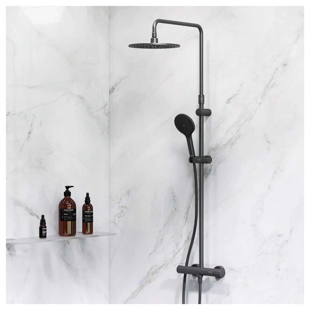 Система оптимально подходит для просторных душевых зон или помещений размером от 1x1 метр. Для компактных кабин размером 0.8x0.8 метр она может оказаться слишком громоздкой и неудобной. Регулируемая по высоте стойка позволяет адаптировать систему под рост пользователя. -