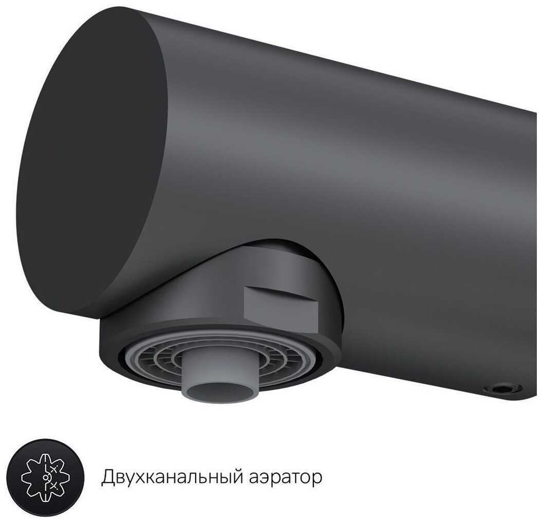 - Технический параметр: отсутствие угла наклона аэратора для смягчения падения воды.