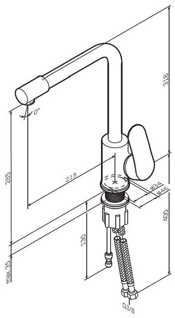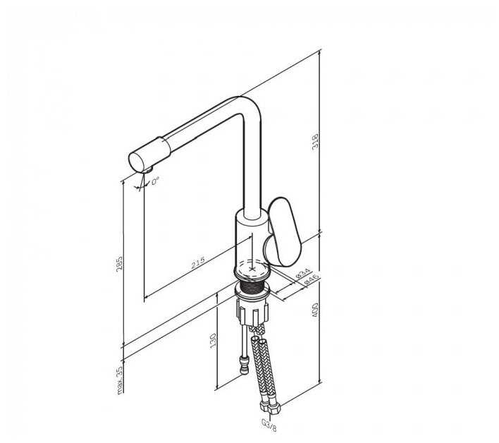 - Гибкие подводки имеют резьбу 3/8" вместо стандартных 1/2", требуя переходников. При повреждении шлангов смеситель неремонтопригоден.