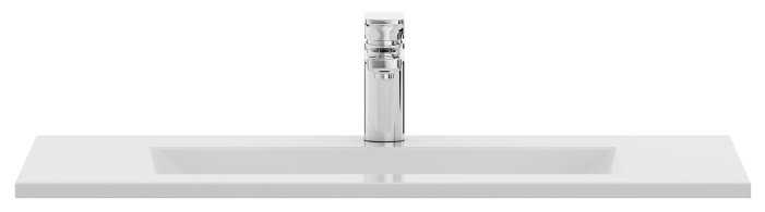 Выглядит она очень красиво. Белоснежная с правильными геометрическими формами. Углы идеально прилегают к поверхности, ничего не задирается вверх. Думаю, что можно поставить на тумбу. Но у нас отдельная столешница, как на кухне, пришлось вырезать под нее отверстие. Раковина сделана добротно. Цельнолитая, без всяких склеек и сборных частей. Отверстие под смеситель находится строго по центру раковины. Слив-перелив выглядят неплохо. У раковины асболютно гладкая поверхность. Проверить это просто - проведите рукой и вы не почувствуете никакой шероховатости. За счет этого уборка занимает по 30 секунд в день.