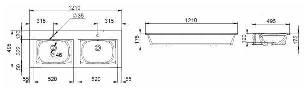 | Расположение размеченного отверстия под смеситель : | в центре |