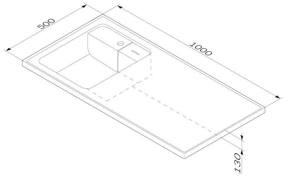 - + Внешний вид, крышка закрывающая слив, по периметру столешницы идут маленькие бортики.