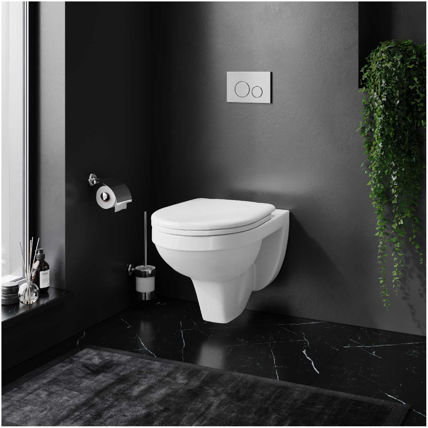 Подвесной унитаз из недорогой партии, поэтому и дизайн у него такой простоватый. Но нам был важен именно...