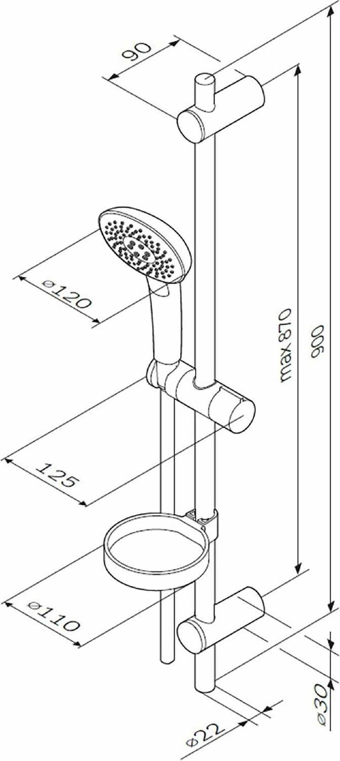 | Дополнительная информация : | высота стойки для душа: 900 мм, диаметр душевой лейки: 110 мм |