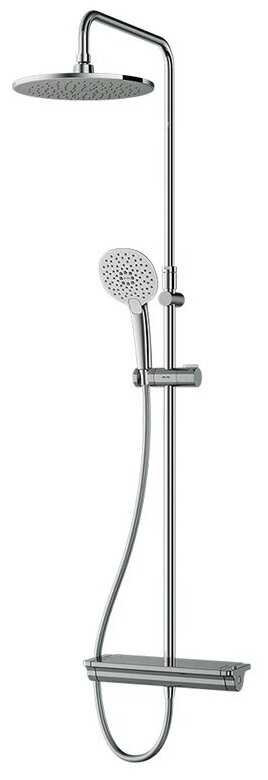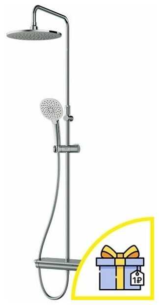 полочка, лейка, шланг, мыльница, держатель лейки, верхний душ, ручной душ, душевая стойка, набор эксцентриков, прокладки, смеситель, кронштейн для верхнего душа, душевая штанга, отражатель