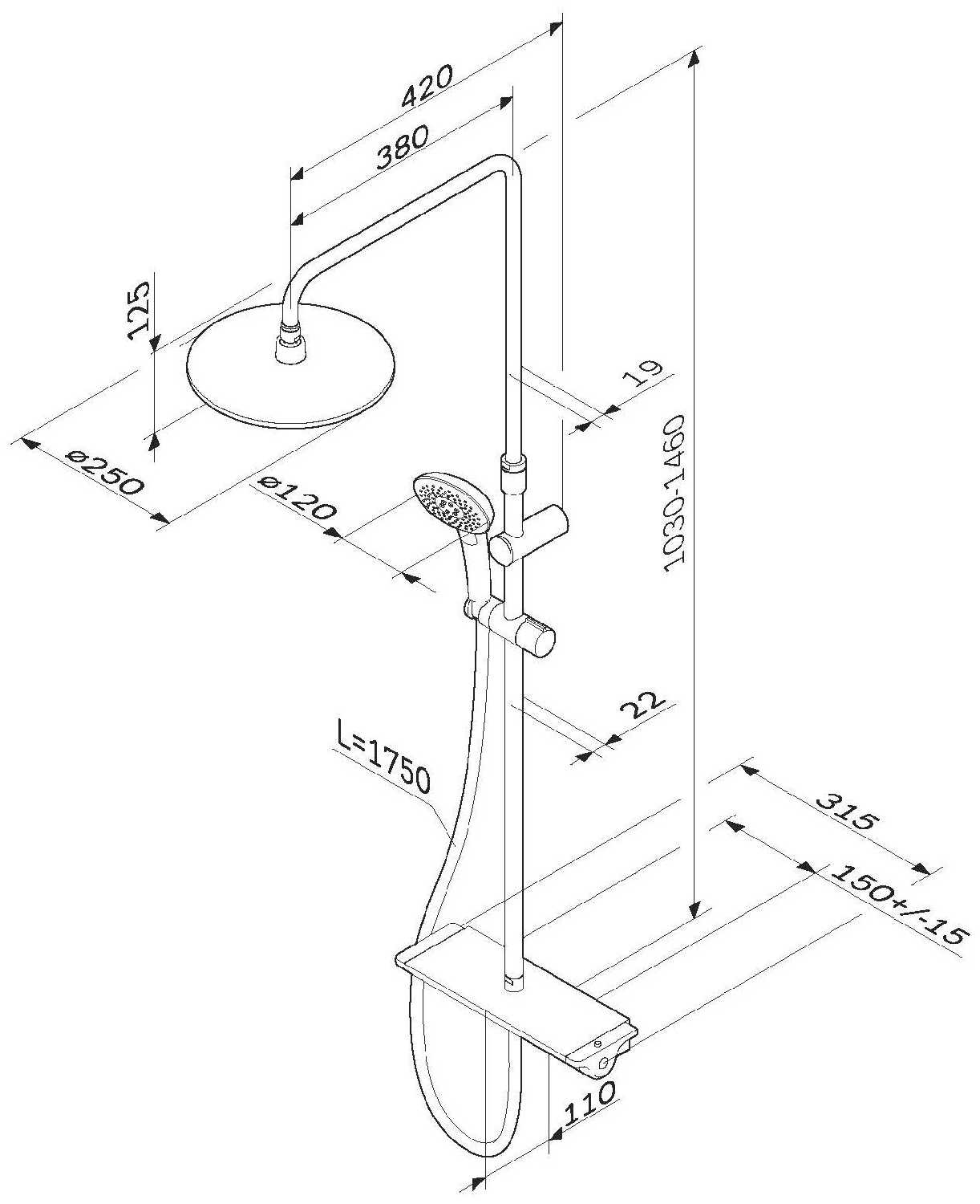 Высота стойки для душа :