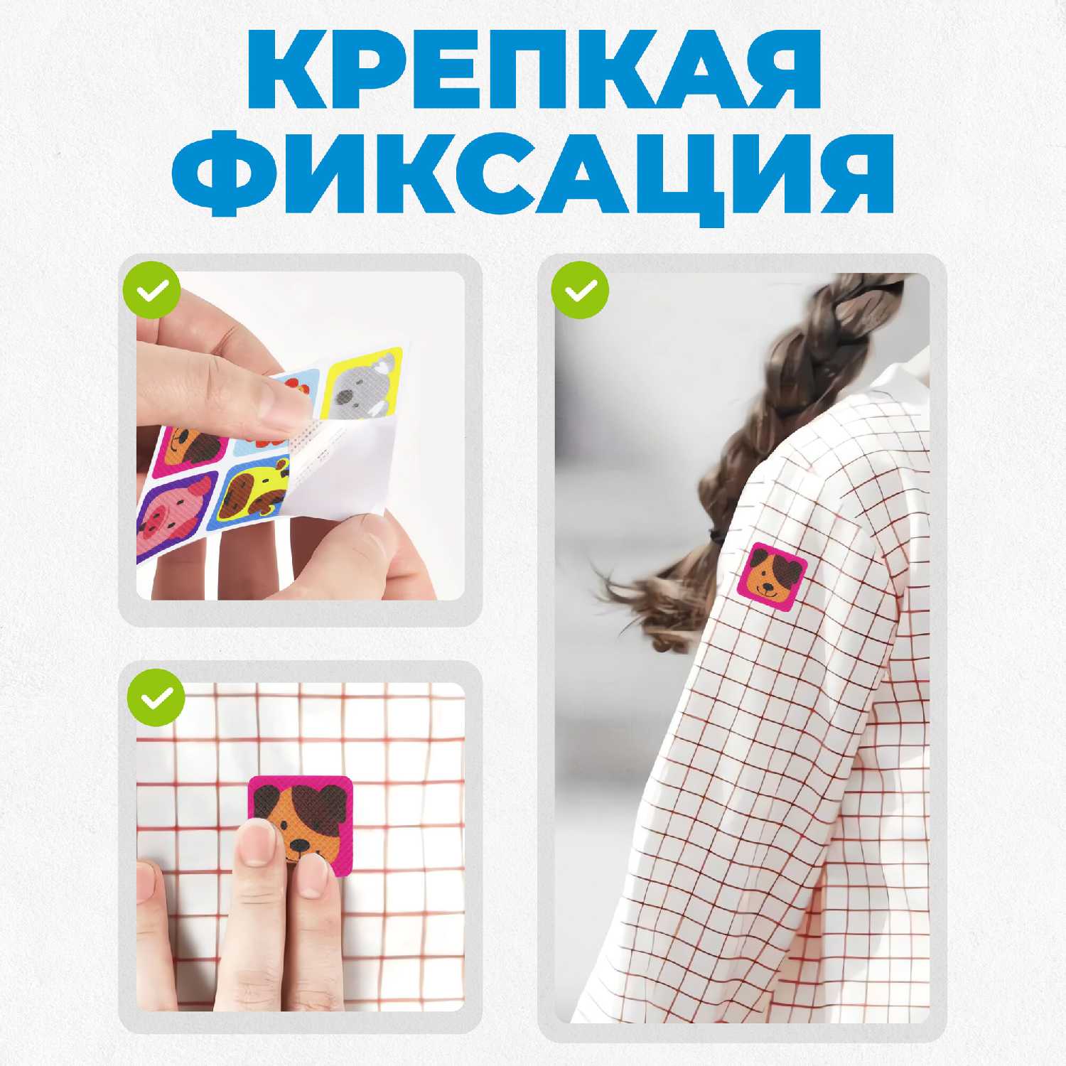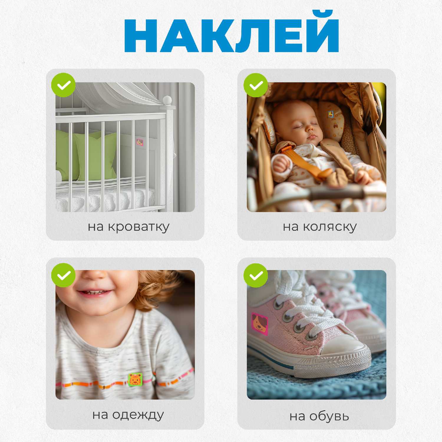 Наклейки демонстрируют отличную адгезию к текстилю (одежда, колясочные ткани, сетки кроваток) и не отклеиваются при движении или ветре. Они оставляют поверхность чистой после снятия без следов клея или повреждений. Однако на гладких синтетических поверхностях фиксация может быть менее устойчивой. -