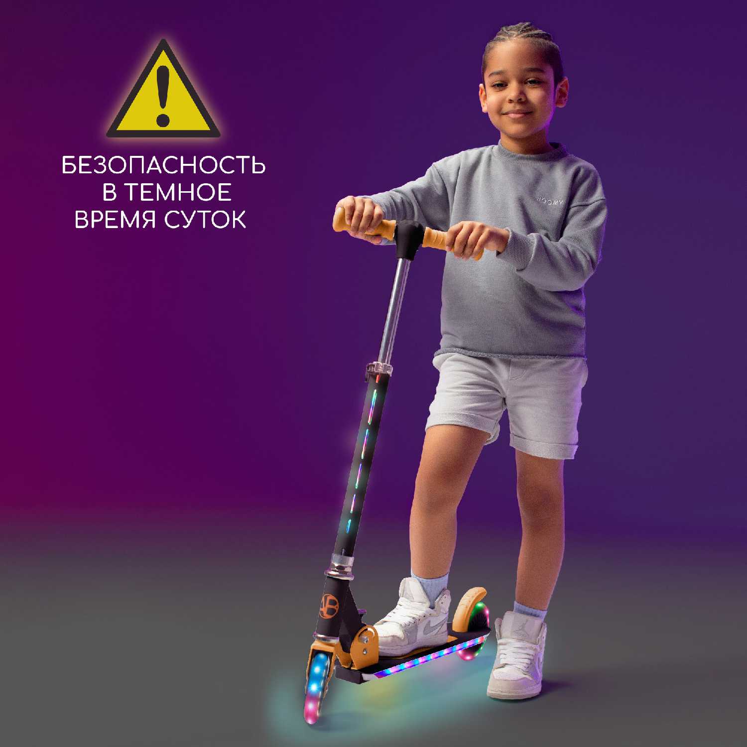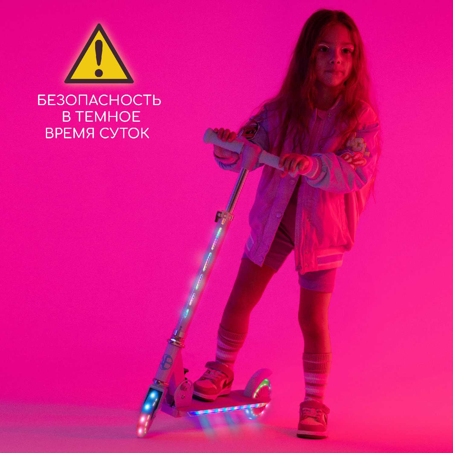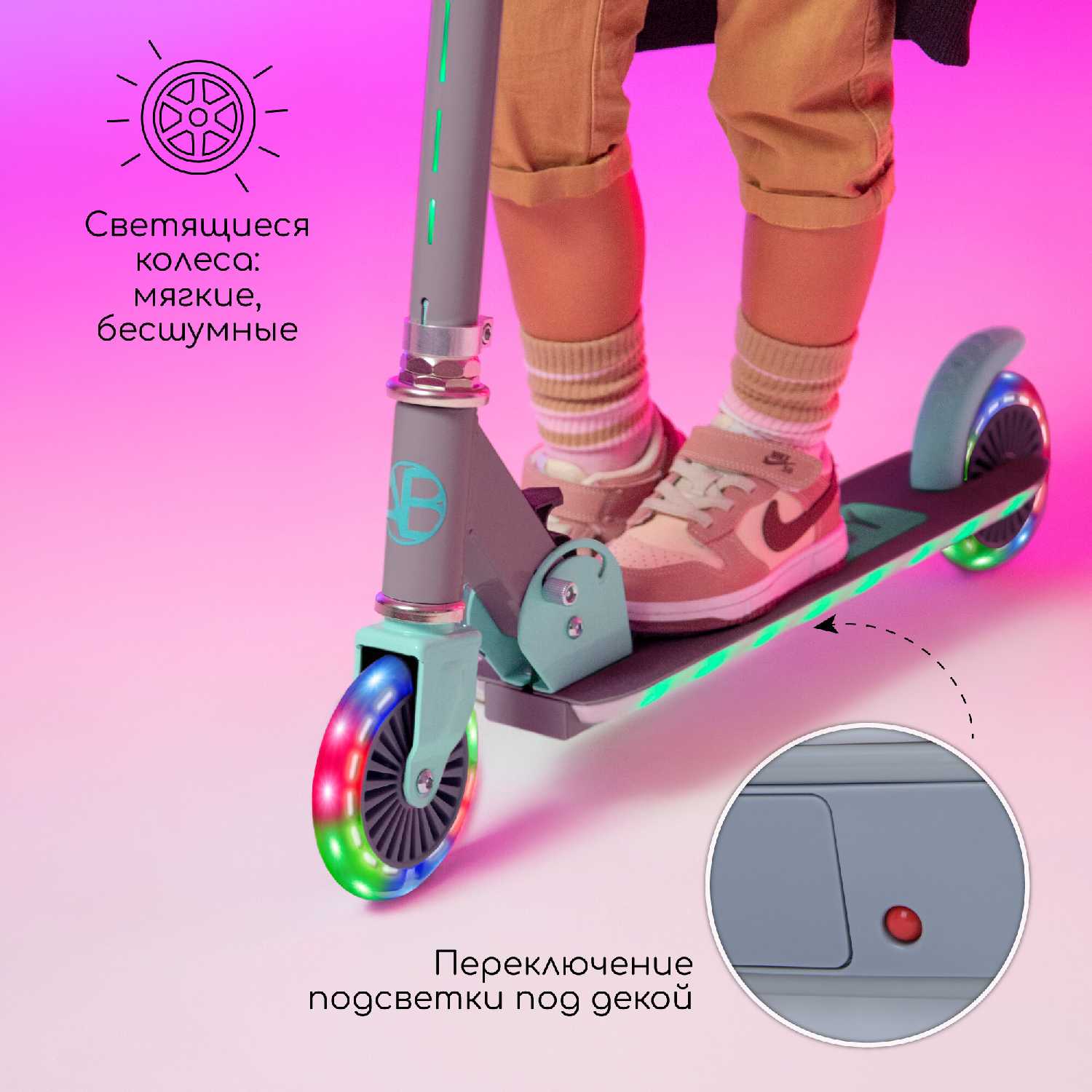 - + самокат супер, цвета яркие, вечером выглядит очень красиво