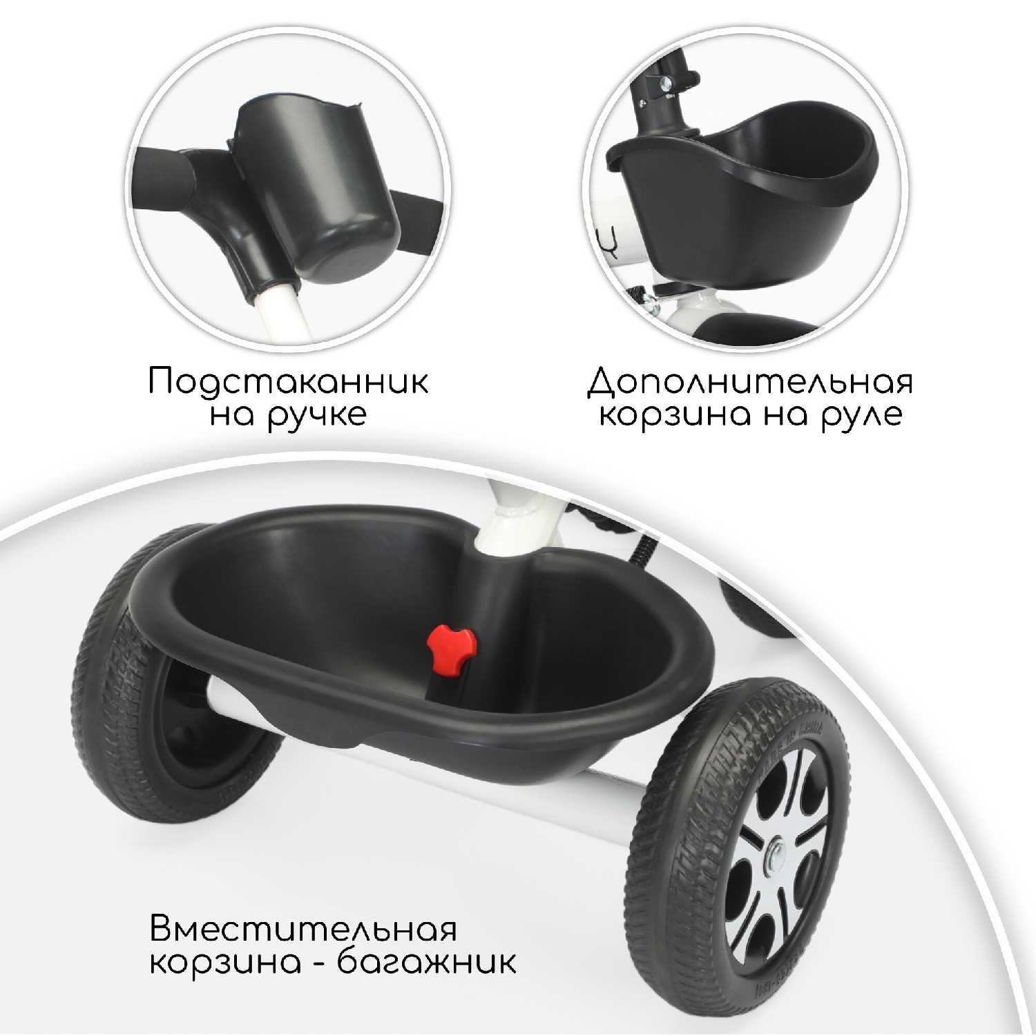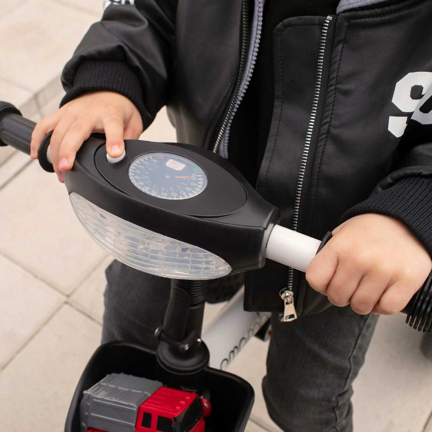 | Дополнительная информация : | музыкальный руль с подтсветкой, складные подноджки под сидением, регулируемая родительская ручка, регилируемое сидение, корзина для хранения спереди и сзади сталь, полипропелен, EVA |