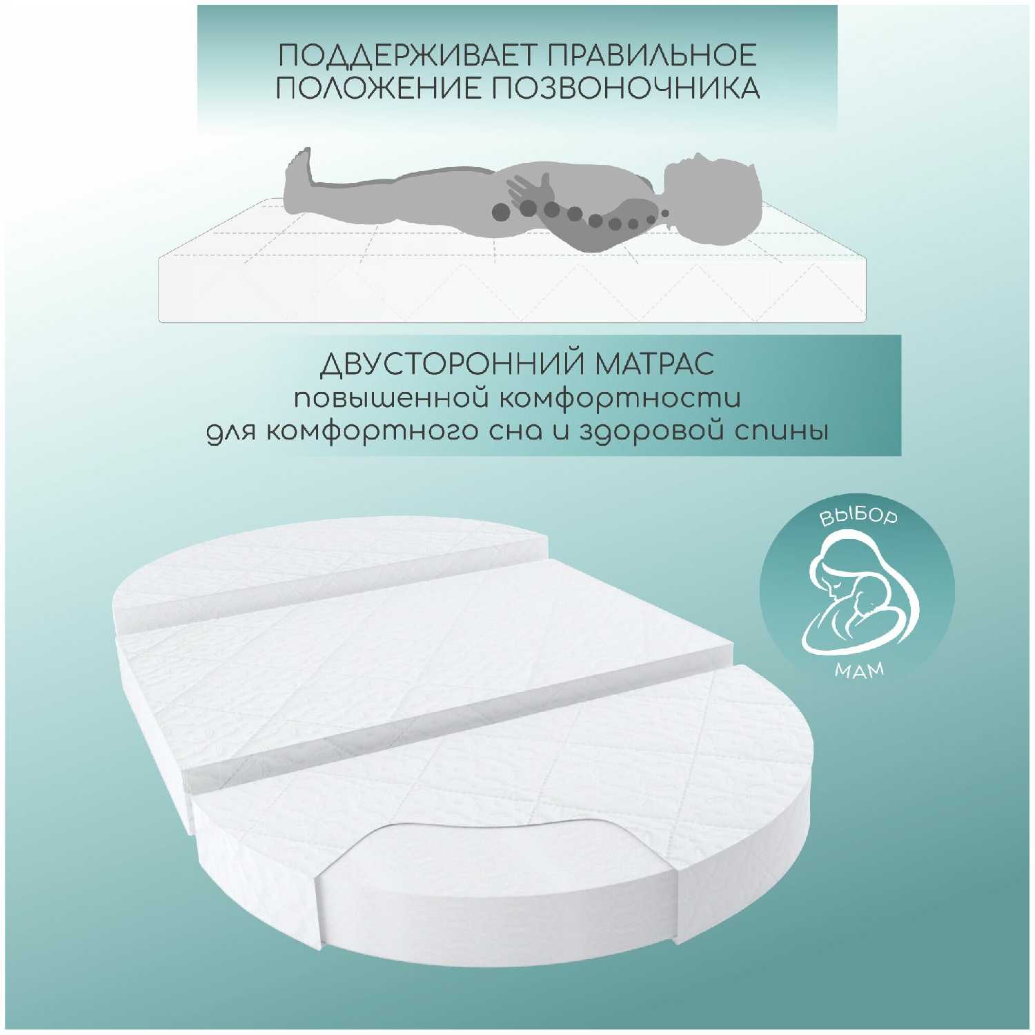 - Универсальность для круглых люлек и овальных столиков-пеленальников.