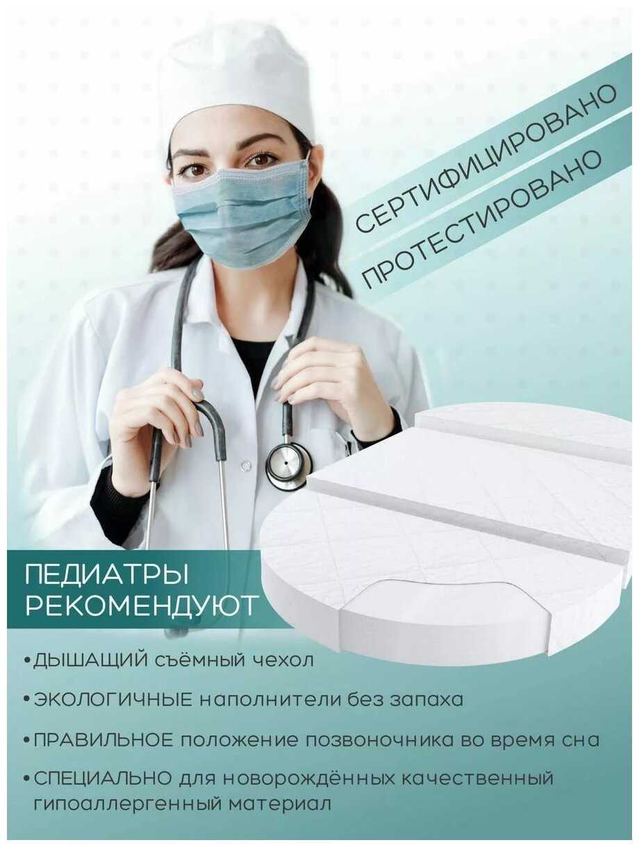 Трансформация и Универсальность: Главное достоинство матраса, неоднократно подтвержденное пользователями, – его способность трансформироваться, подстраиваясь под рост ребенка и различные конфигурации кроваток. Он одинаково хорошо работает как в круглой люльке, так и в овальной кроватке-трансформере (указываются размеры 125x75 см), что является его ключевым конкурентным преимуществом. Пользователи с двойняшками особенно ценят это свойство. Матрас идеально встает по размеру в кроватки типа "Хеппи беби" с закругленными углами и даже на пеленальный столик, избавляя от необходимости покупать отдельные матрасы для разных форм.