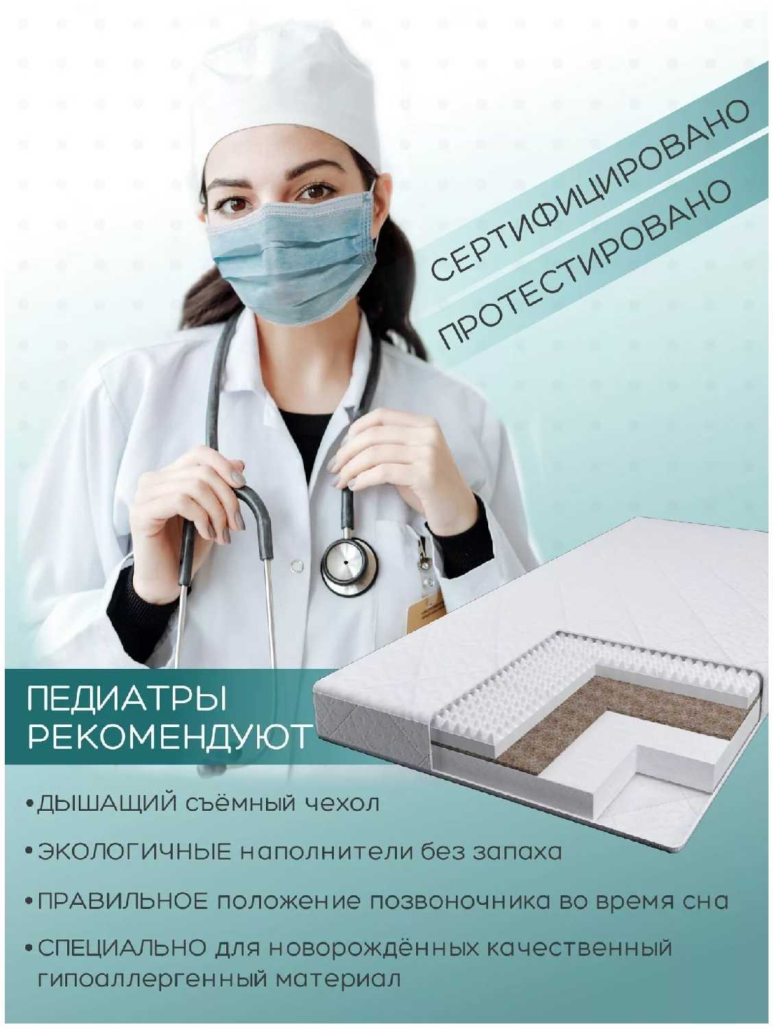 - Кокосовый слой толщиной 1 см не компенсируется мягким наполнителем — это вызывает дискомфорт у худых детей (вес менее 15 кг).