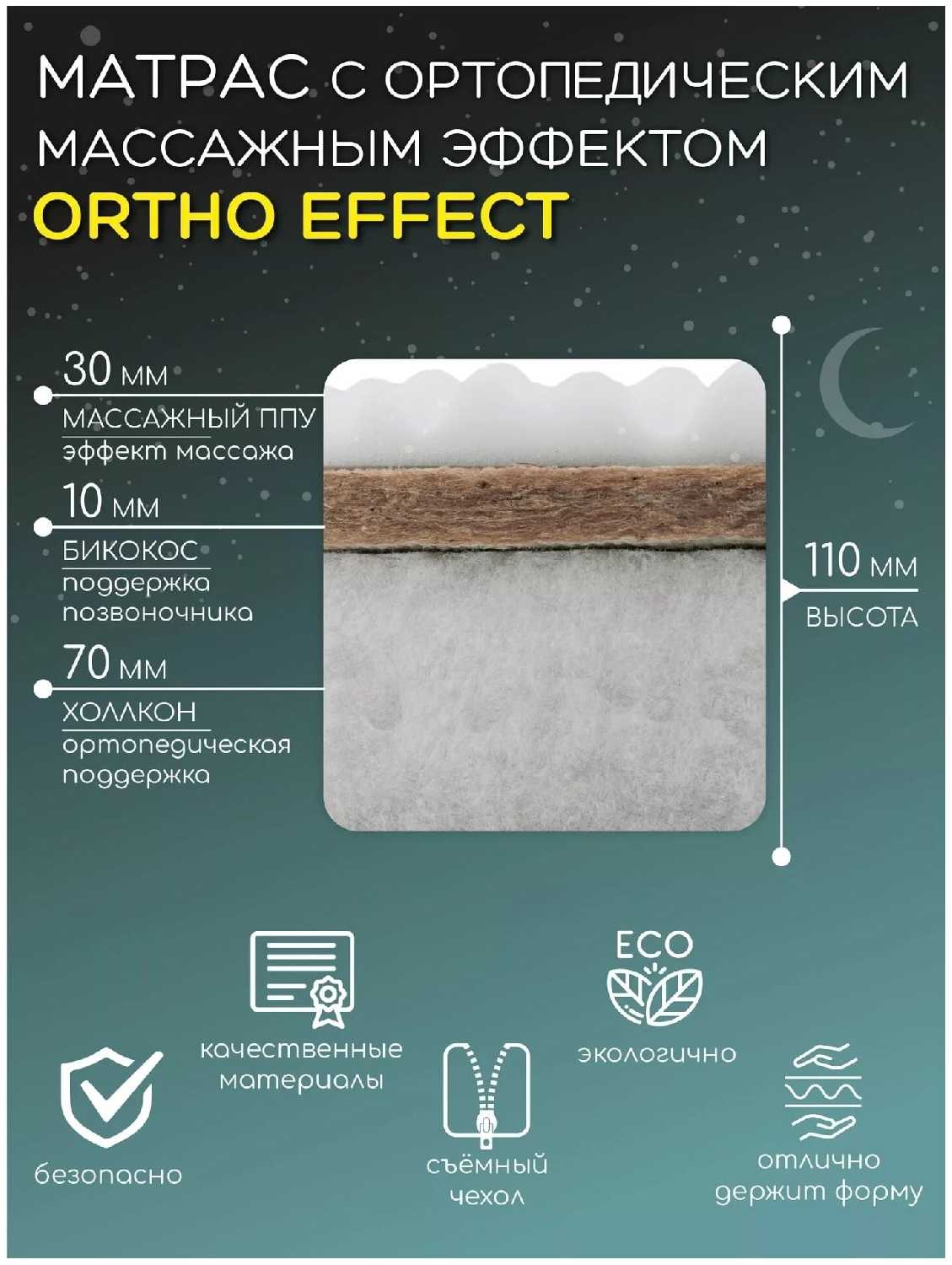 Да, матрас двухсторонний: одна сторона стандартная, а вторая имеет массажный эффект за счёт рельефной поверхности. Пользователи подчёркивают, что "массажная сторона прекрасна" и улучшает комфорт сна. Толщина в 11 см в сочетании с прослойкой из кокосового волокна обеспечивает оптимальную поддержку без излишней жёсткости, что особенно важно для детских кроватей. -