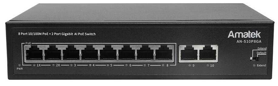 Отзывы о Коммутатор Amatek AN-S10P8GA (10-портов, 100 Мбит/с L2 с PoE+ до 120Вт)