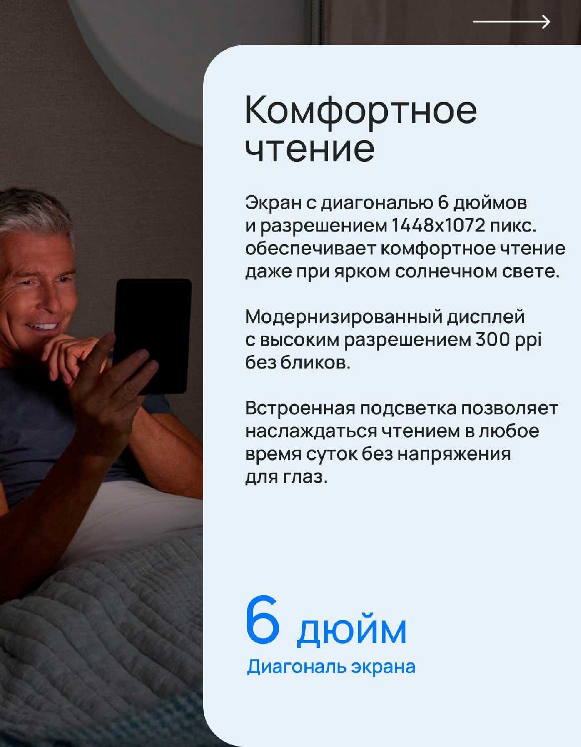- + Идеальная книжка. Заряд за 5 дней упал только на 23% при среднем использовании. Быстрая настройка (кабинет в амазон заводите сразу со включенным впн, тогда номер телефона не требуется, только почта)