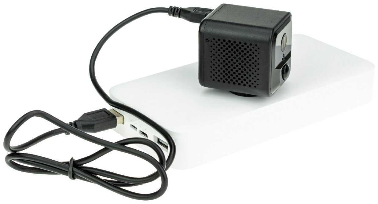 - Дизайн в виде "кубика" маскирует камеру под бытовой предмет.