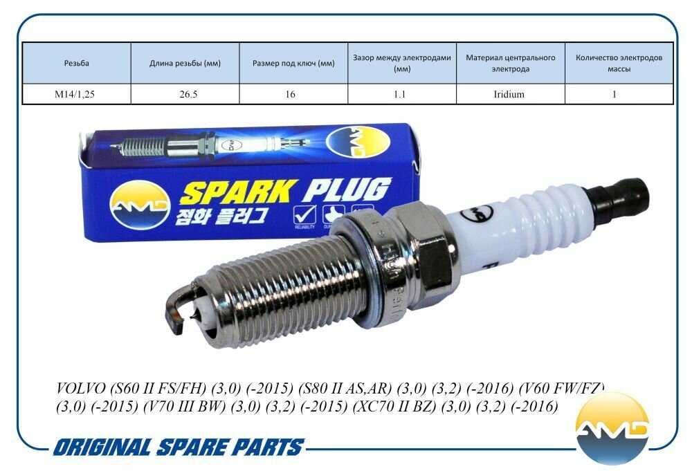 Отзывы о Свеча зажигания 31286359/DILFR6A11/AMD. PL147 Iridium для VOLVO (S60 II FS/FH) (V70 III BW) (XC70 II BZ)
