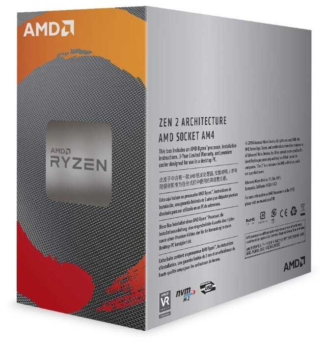 - Работает с материнскими платами на чипсетах B450, X470, X570 после обновления BIOS.