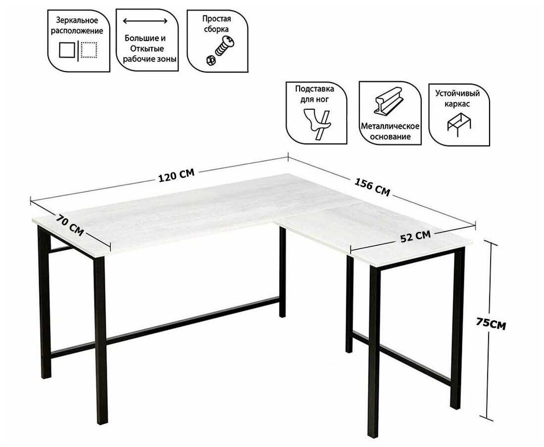 прекрасный угловой стол в стиле лофт. отдельно на сайте компании-производителя дозаказывала подставку под системный блок и органайзер под провода, отличная клиентоориентированность, решили вопросы по доставке, объединили заказ с яндекс-маркета и с сайта, чтобы все пришло вместе.