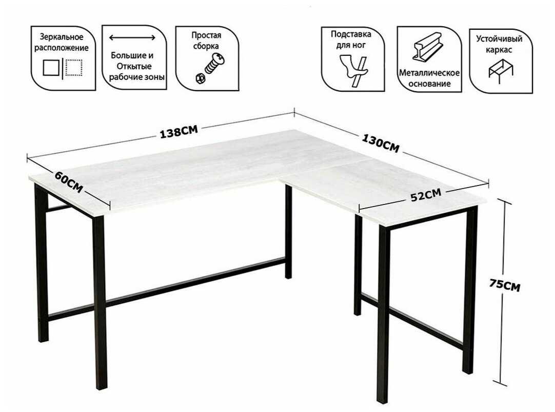 - + Отличный угловой стол! Качественный каркас, равномерно везде прокрашен. У полотна кромка не острая, добротно сделана.