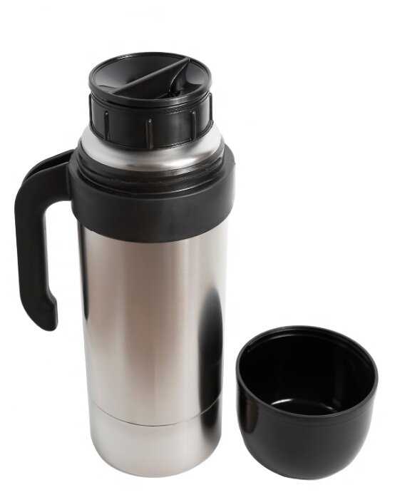 - + Изготовлен из нержавеющей стали, крышка пластик. Может быть он и выглядит не очень блестяшим и не достаточно красивым. Зато это термос ОТЛИЧНО хранящий тепло, так как ВАКУУМНЫЙ. Произведён в России на Урале. Удобно мыть крышку, так как она легко разбирается.